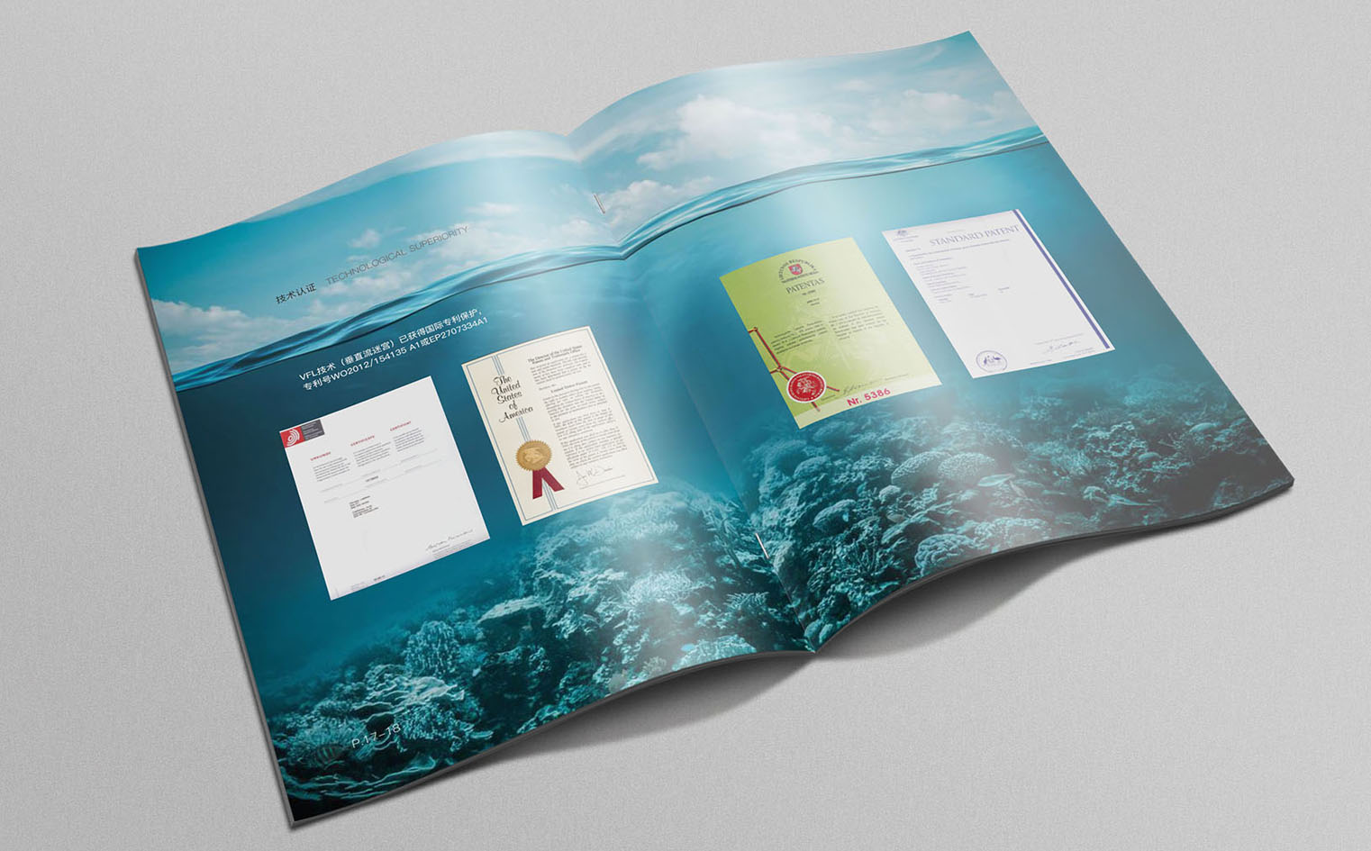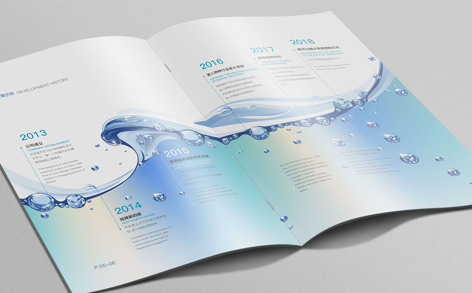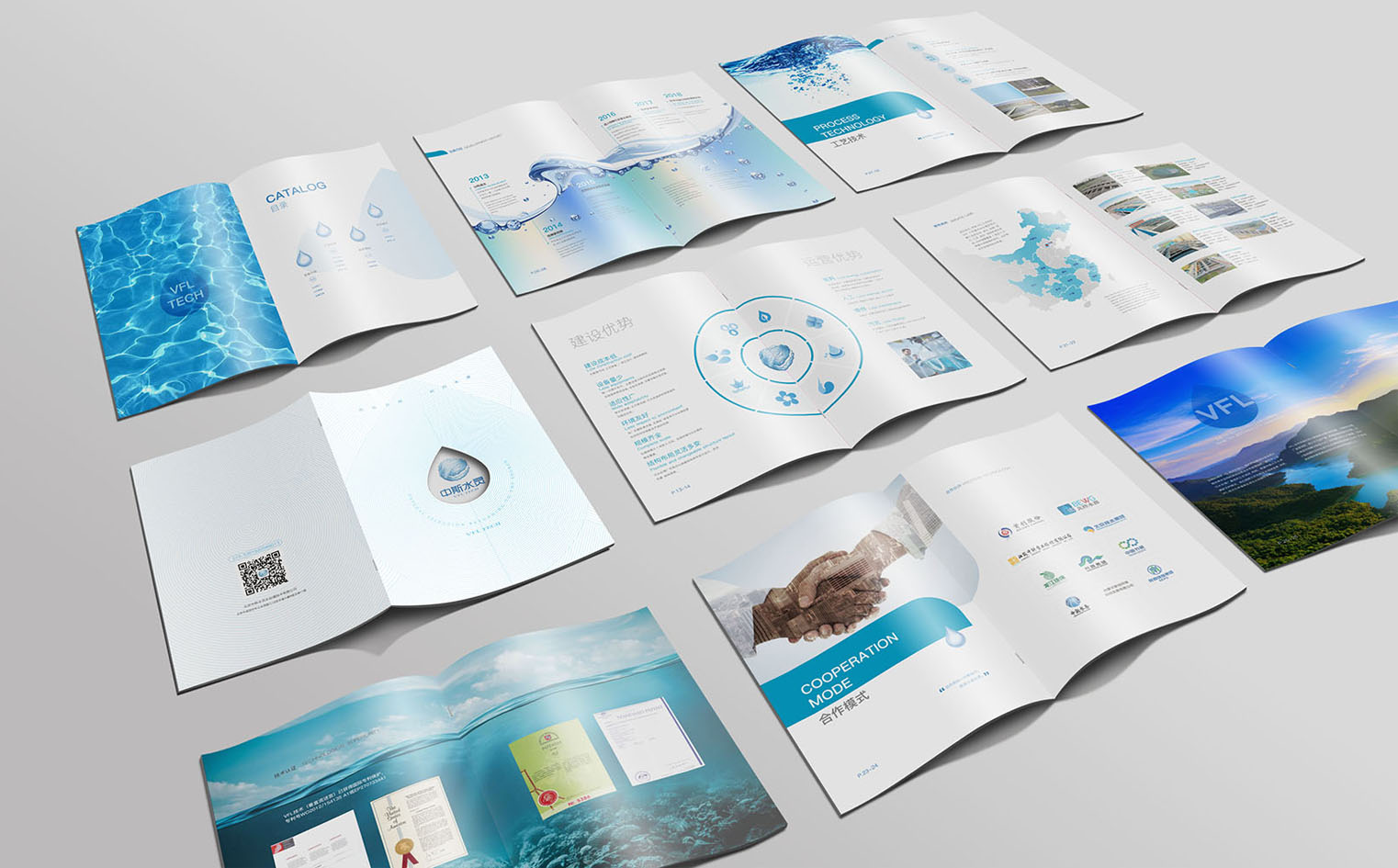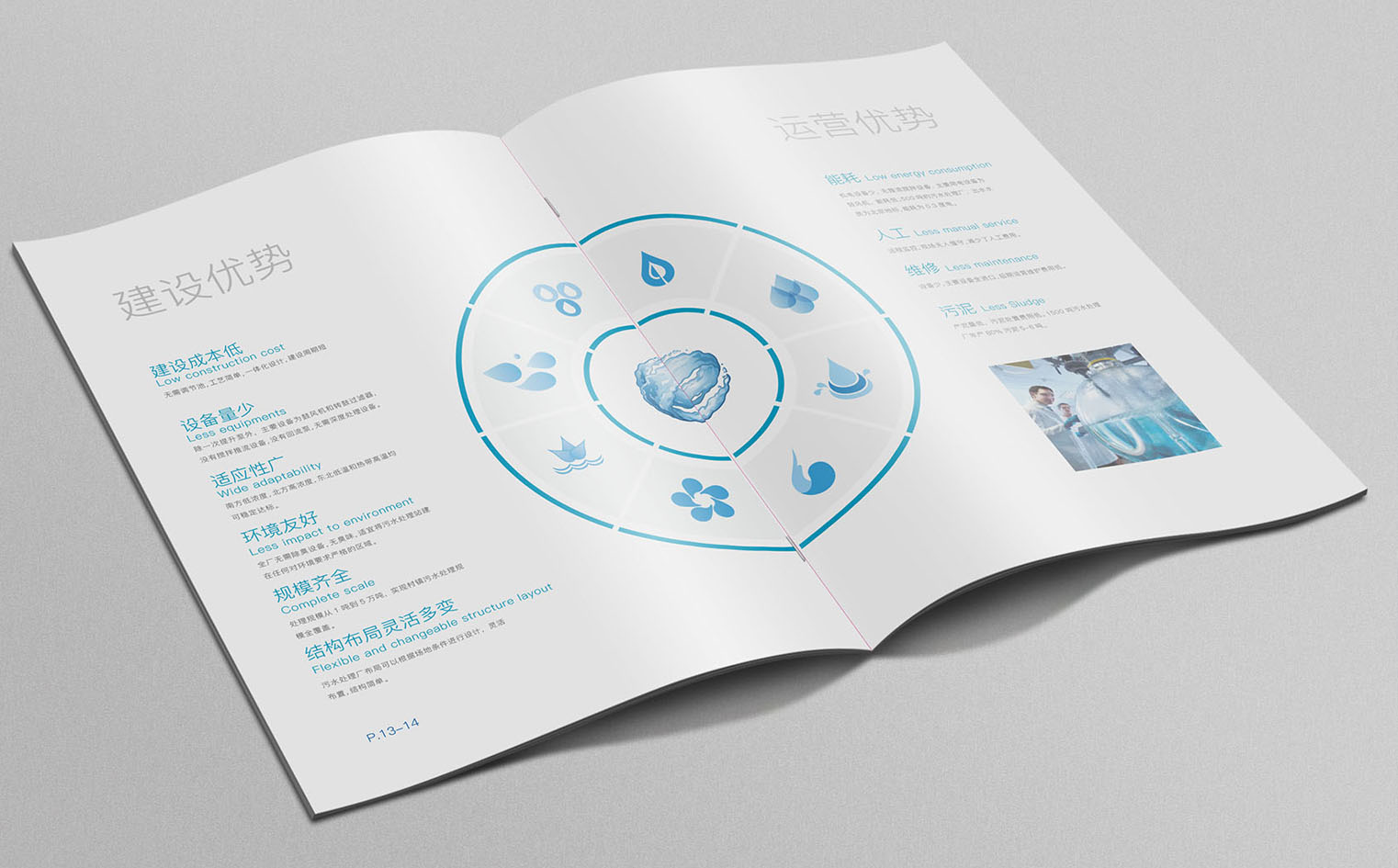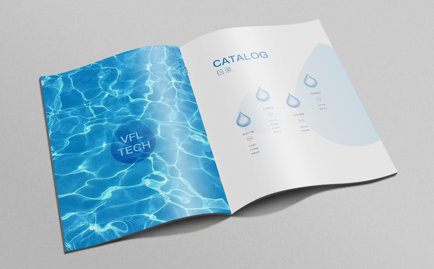 將水處理(li)業務進行符號提(ti)取,貫穿于(yu)正本畫冊之中。風格(ge)清新(xin)脫俗,在眾(zhong)多畫冊中脫穎而(er)出。