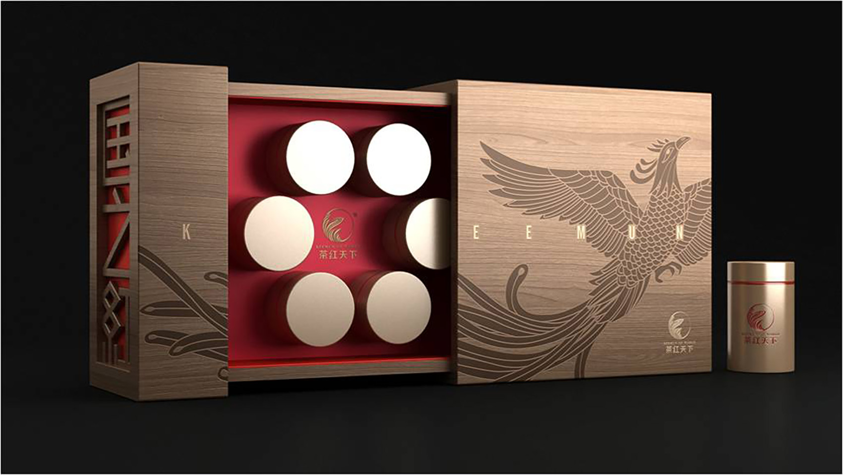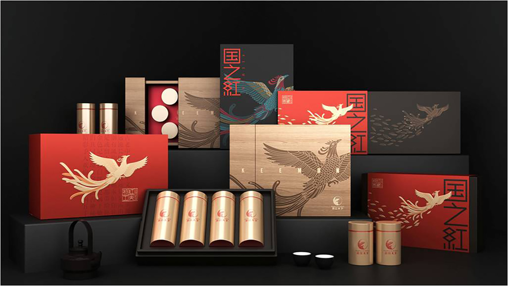 包裝以朱雀圖騰為核心符號(hao),結合凸起拋(pao)光工藝與磨砂(sha)工藝,強(qiang)化質感與辨識(shi)度。錫器(qi)材(cai)質選擇既保(bao)持茶葉鮮(xian)美,又體(ti)現產品分量感。