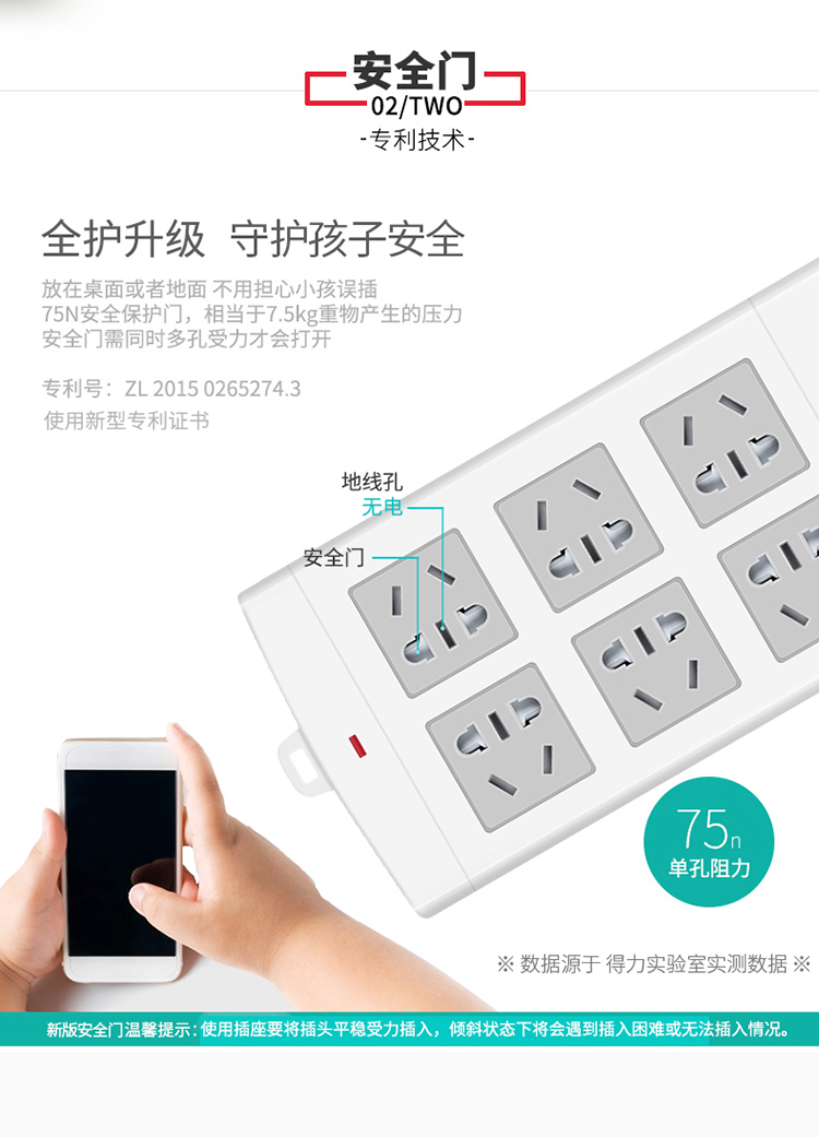 “deli/得力”18207 延長線插座 單個(gè)裝(白色新國標(biāo)安全插排插線板接線板排插拖線板總控開關(guān)兒童保護(hù)門6組合孔10米PVC袋裝)