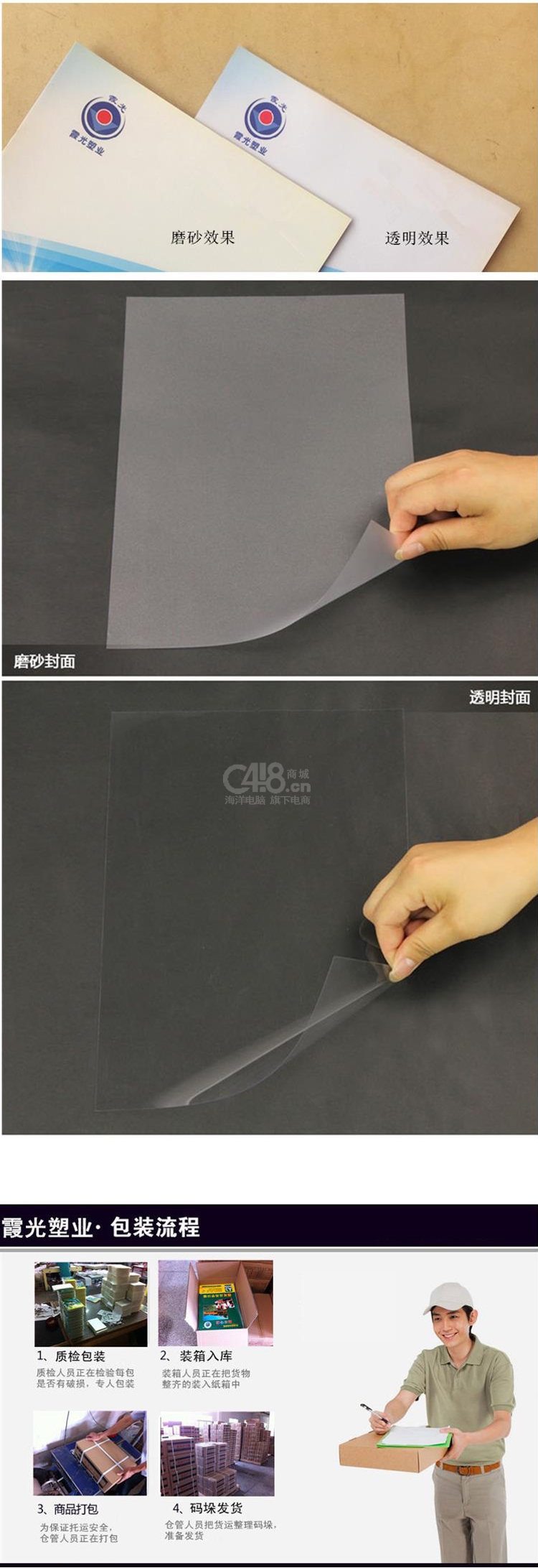 “XIAGUANG/霞光”A4 10絲 裝訂膠片 單盒裝(透明PET塑料裝訂封面透明封面100張/盒)