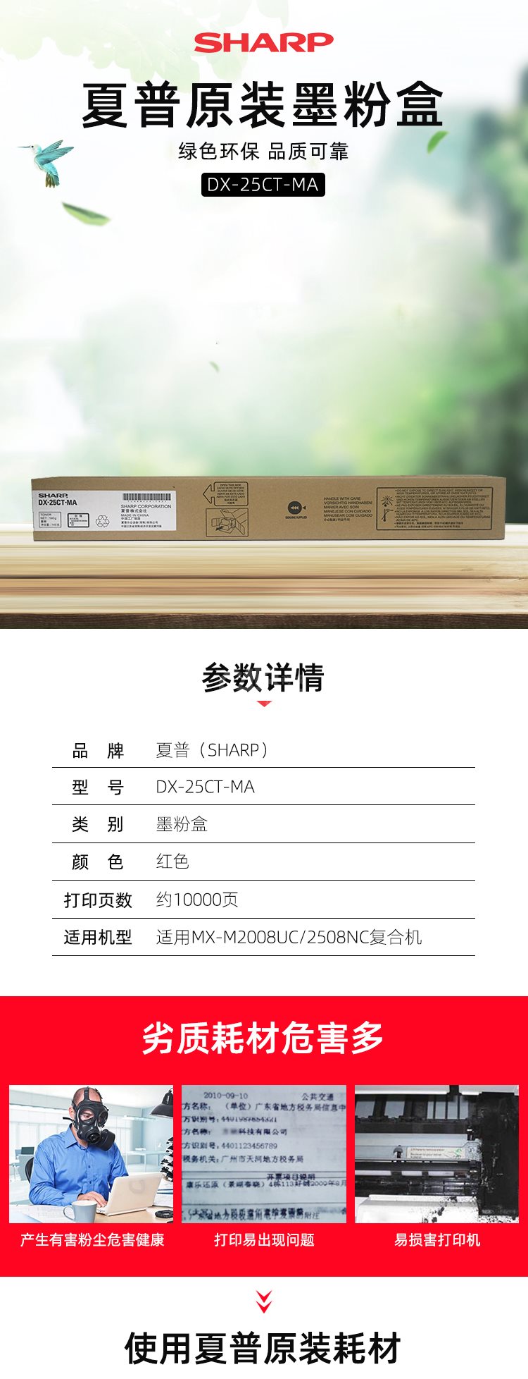 “SHARP/夏普”DX-25CT-MA 墨粉盒 單個裝(紅色10K適用DX2008UC/2508NC復合機DX-25CTMA)