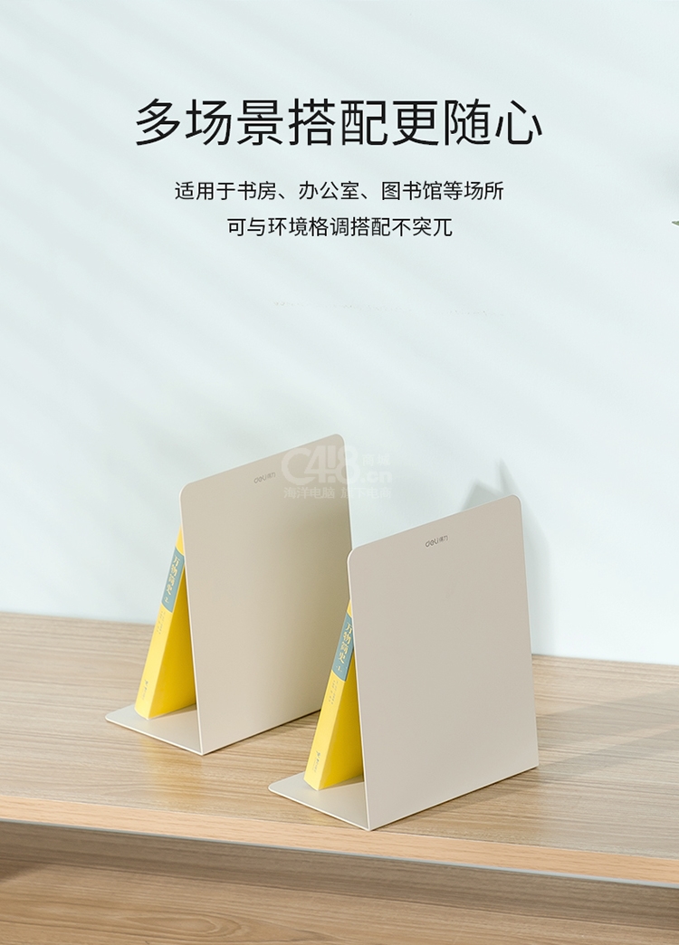 “deli/得力”No.78650 書立 單付裝(米白色18cm高簡約書立架書籍擋靠夾2片/付)