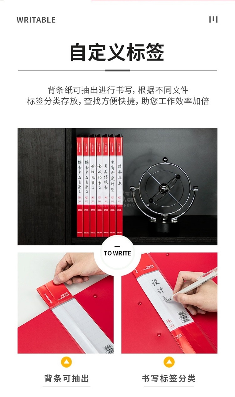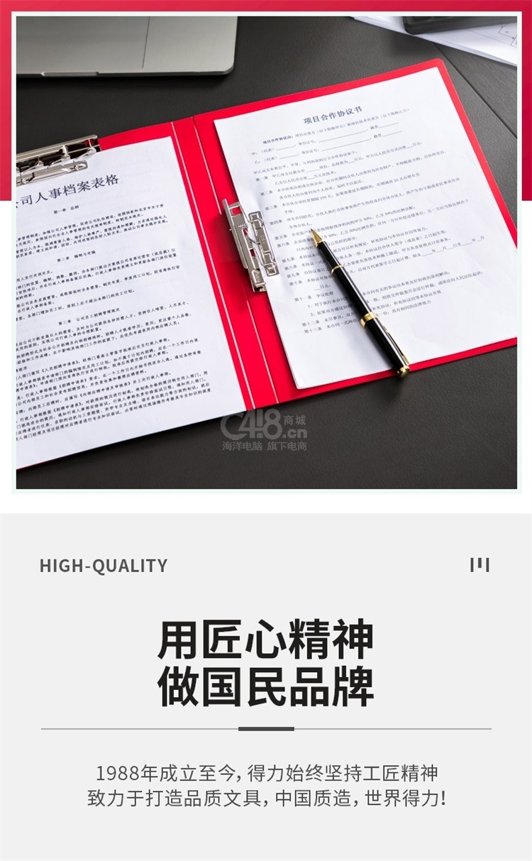 “deli/得力”No.64510 文件夾 單個裝(中國紅A4單強(qiáng)力夾資料夾收納夾試卷資料朗誦簽約板夾)