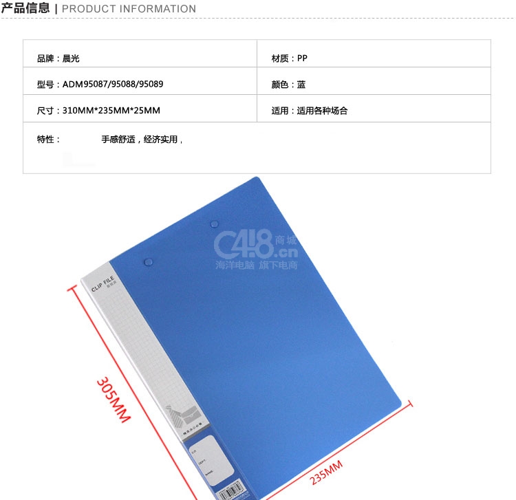 “M&G/晨光”ADM95087 文件夾 單個裝(藍(lán)色A4新銳派單強(qiáng)力夾ADM95087B)
