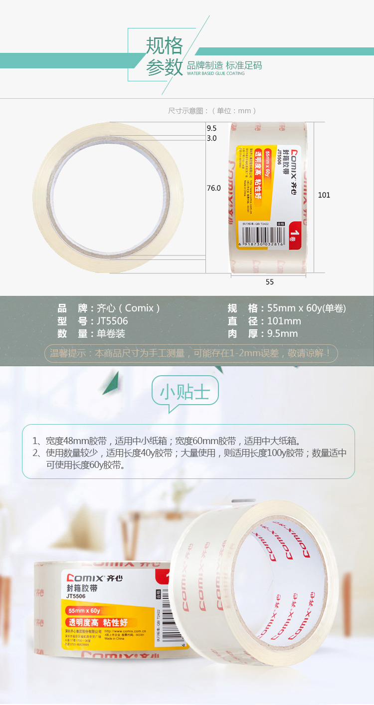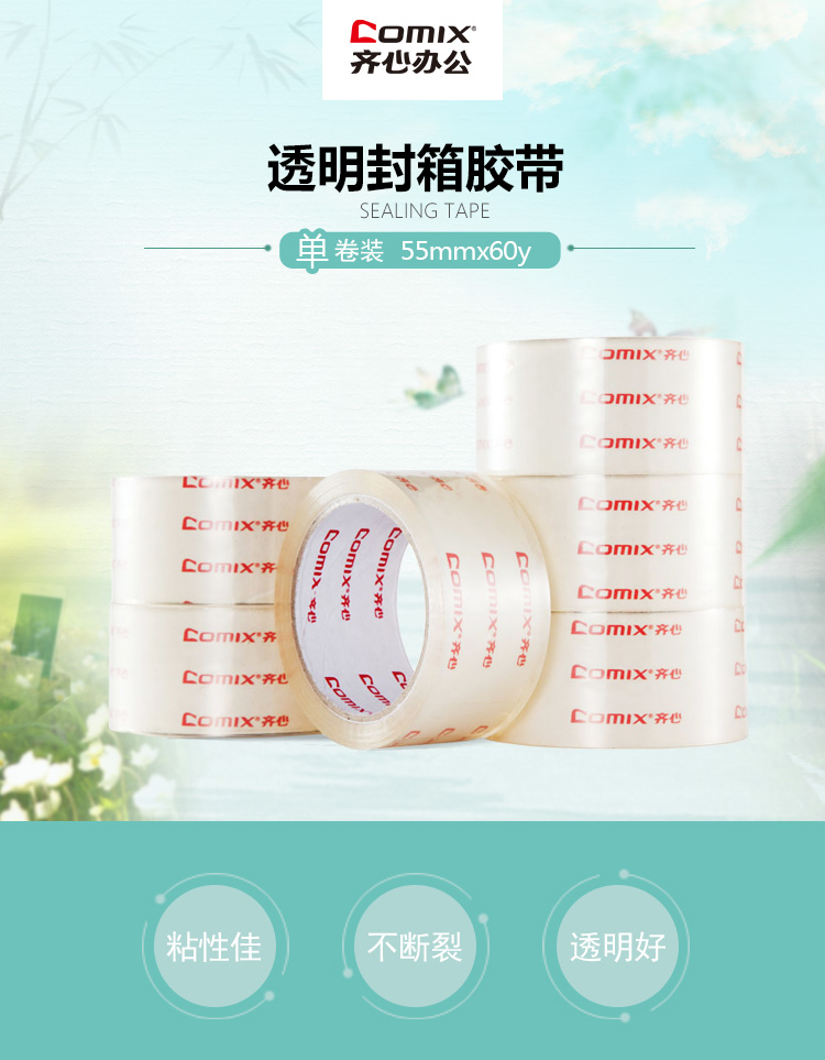“COMIX/齊心”JT5506 封箱膠帶 單卷裝(高品質(zhì)高透明寬55mm*長54.9米/卷快遞打包辦公用品)