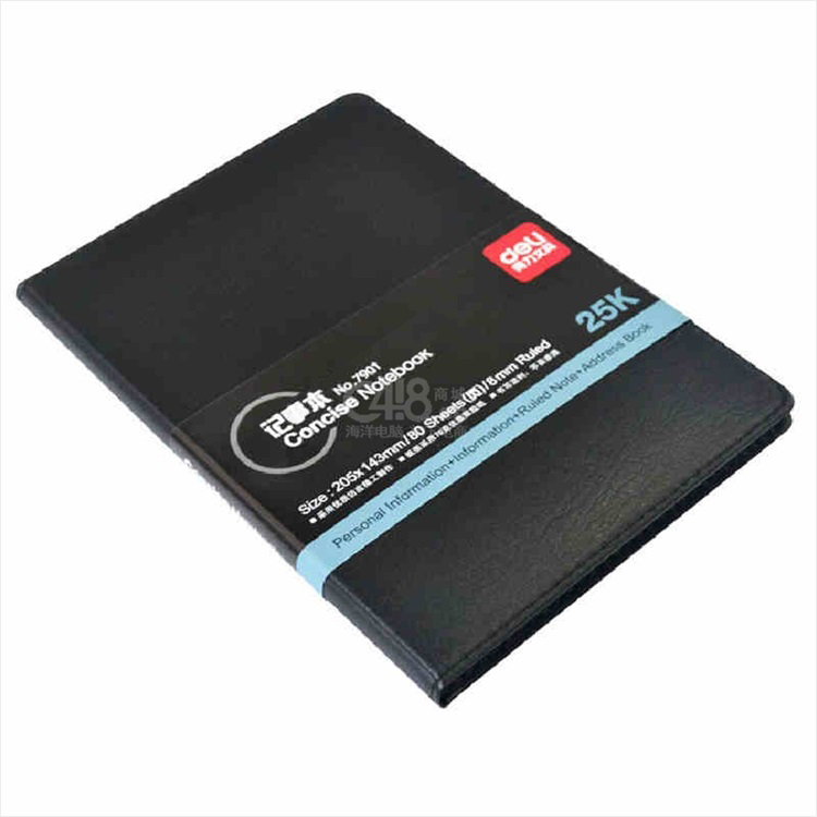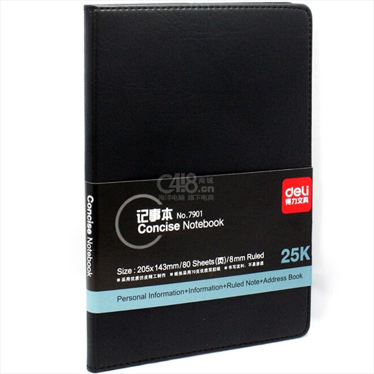 “deli/得力”No.7901 記事本 單本裝(黑色25K 80張商務(wù)經(jīng)典皮面本辦公用品會議筆記本子文具)