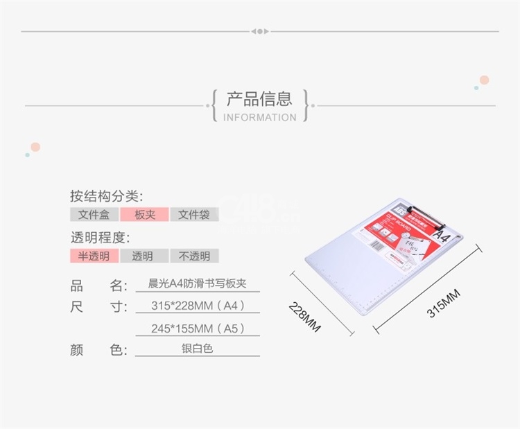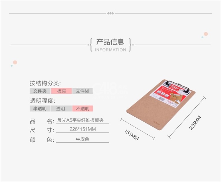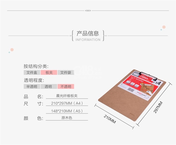 “M&G/晨光”ADM94877 纖維板板夾 單個裝(原木色A4寫板夾記事夾文件夾寫字墊板)