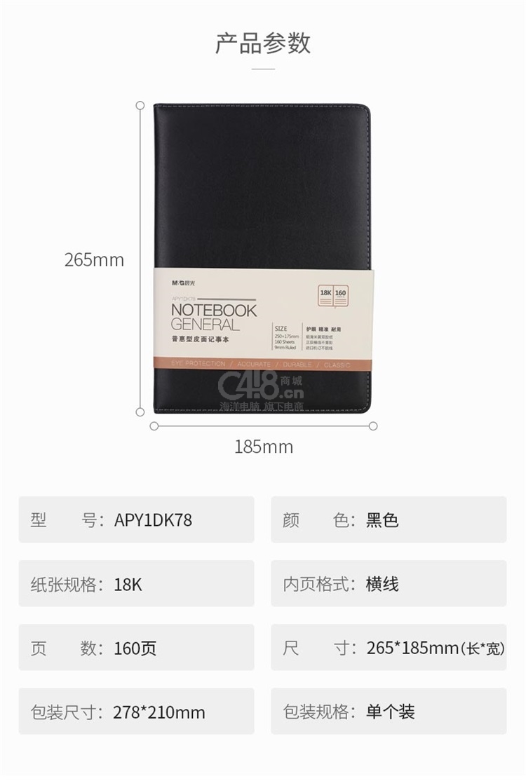 “M&G/晨光”APY1DK78 普惠型皮面記事本 單本裝(黑色18K會議記錄本辦公筆記本160頁/本APY1DK78A)