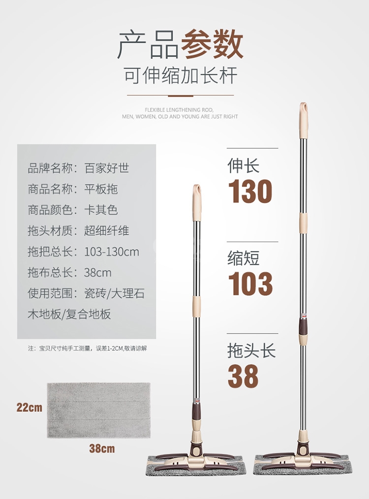 | 商品尺寸 | 拖布:22*38cm,拖把長(zhǎng)度:103-130cm |