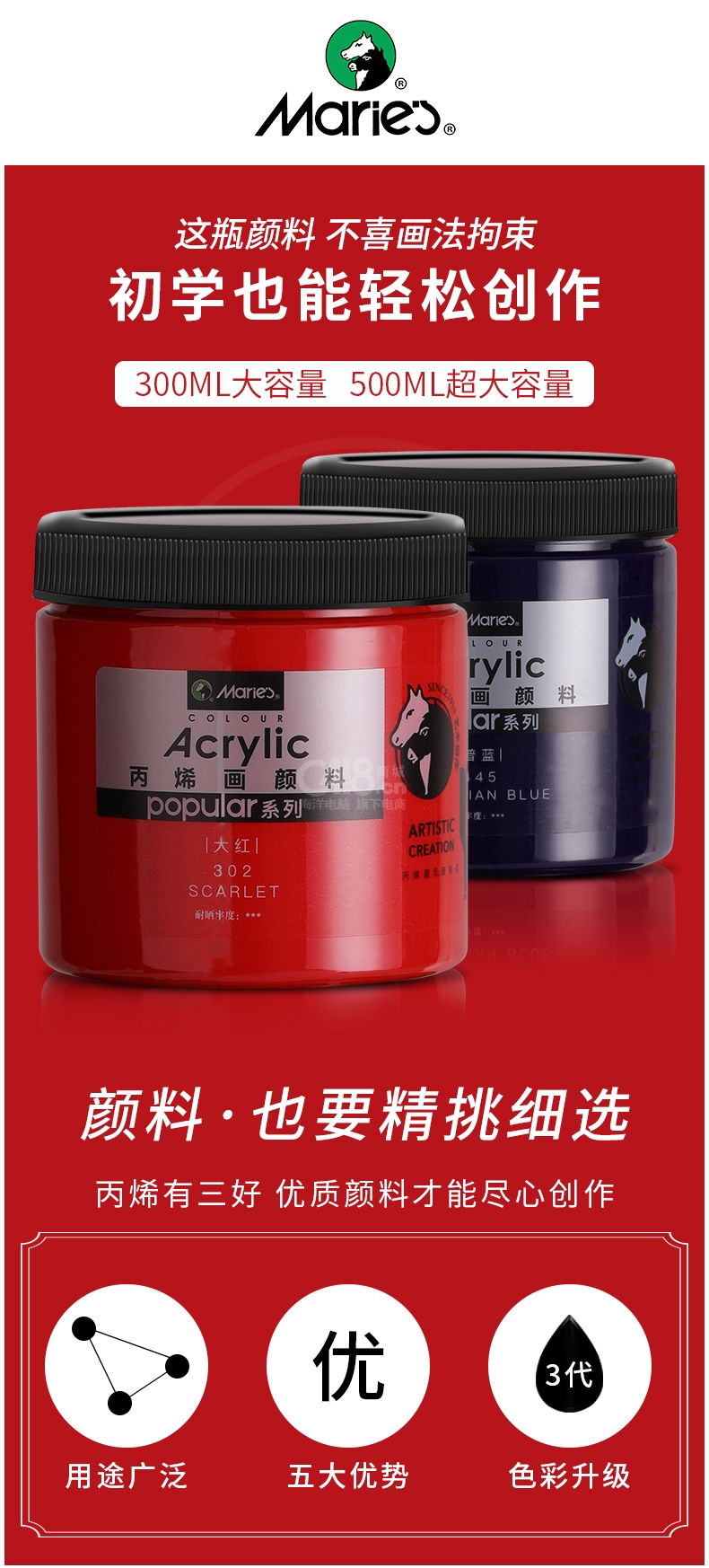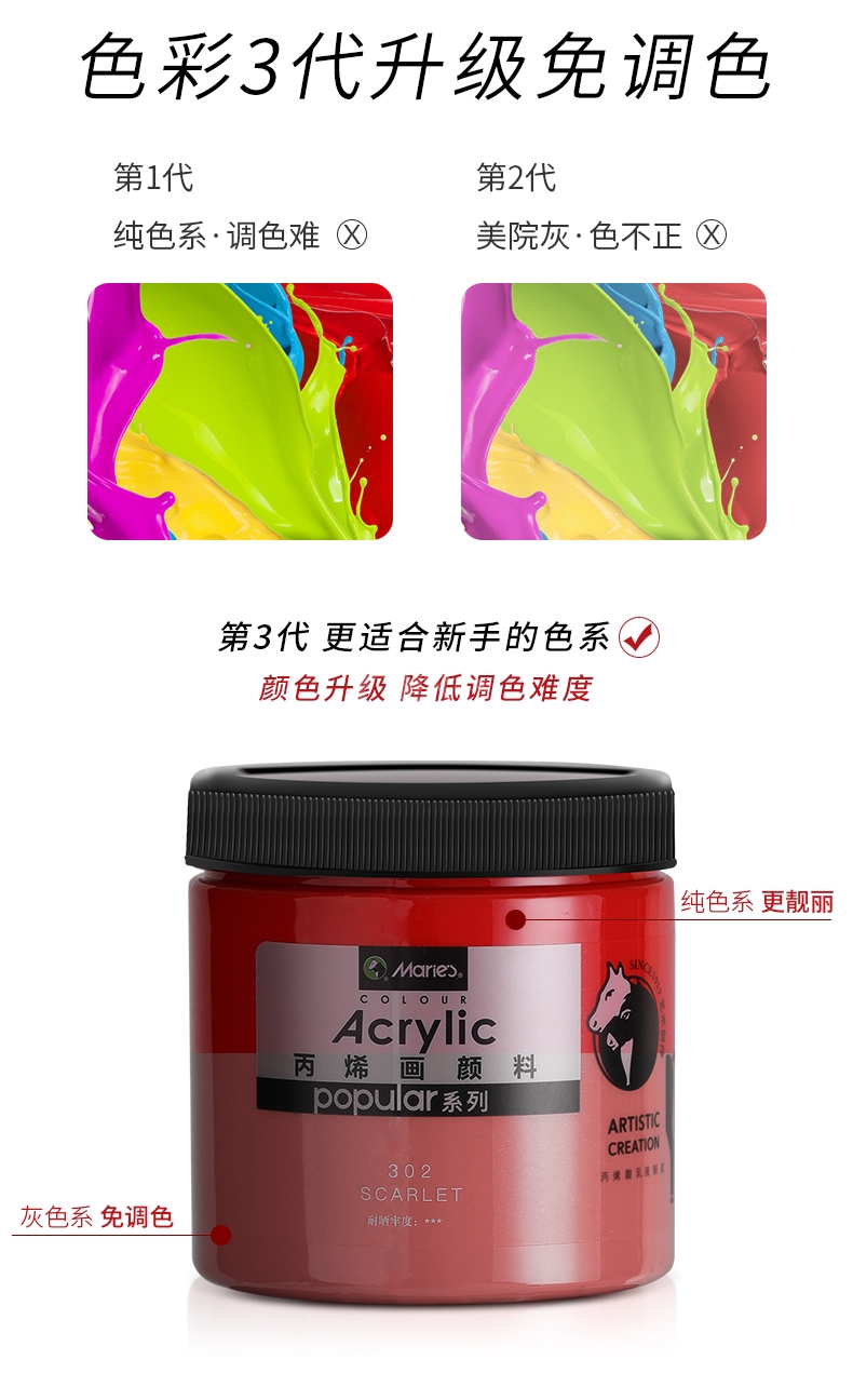 “Marie’s/馬利”popular系列 104 丙烯畫顏料 單瓶裝(鈦白300ml藝術(shù)墻繪手繪涂鴉不掉色防水A-Z300)