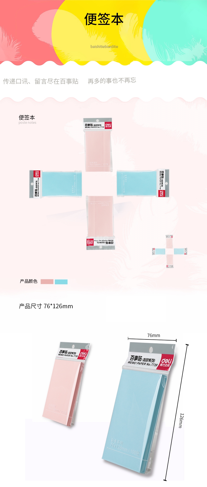 “deli/得力”No.7701 便條紙 1包裝(白色107*96mm便簽紙記事白紙300張/包)
