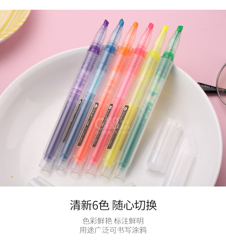 晨光(M&G)本味系列6色熒光筆醒目標記水性記號筆 6支/盒AHM22703