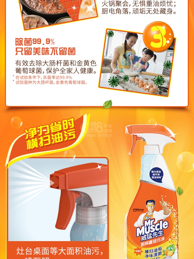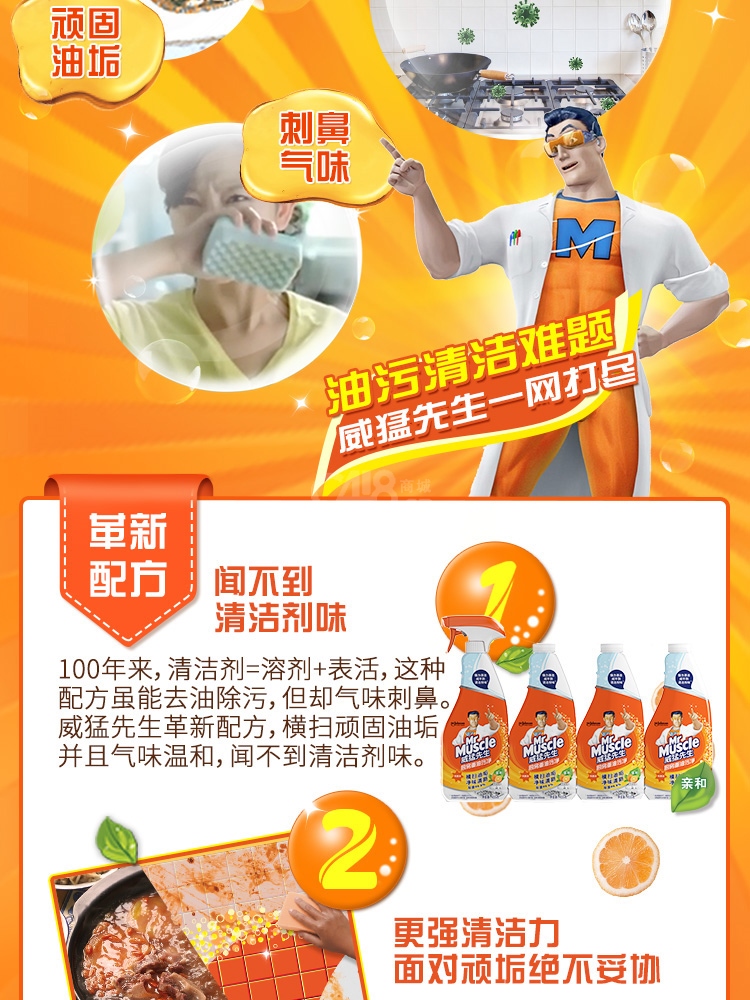 “Mr Muscle/威猛先生”清新柑橘 455克+455克 廚房重油污凈 1包裝(強力去油污廚房清潔劑抽油煙機廚房餐廳2瓶/包455g+455g)