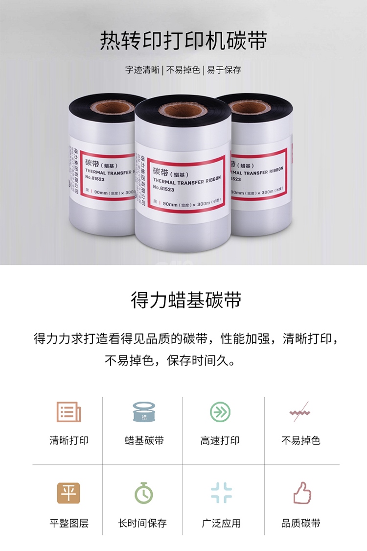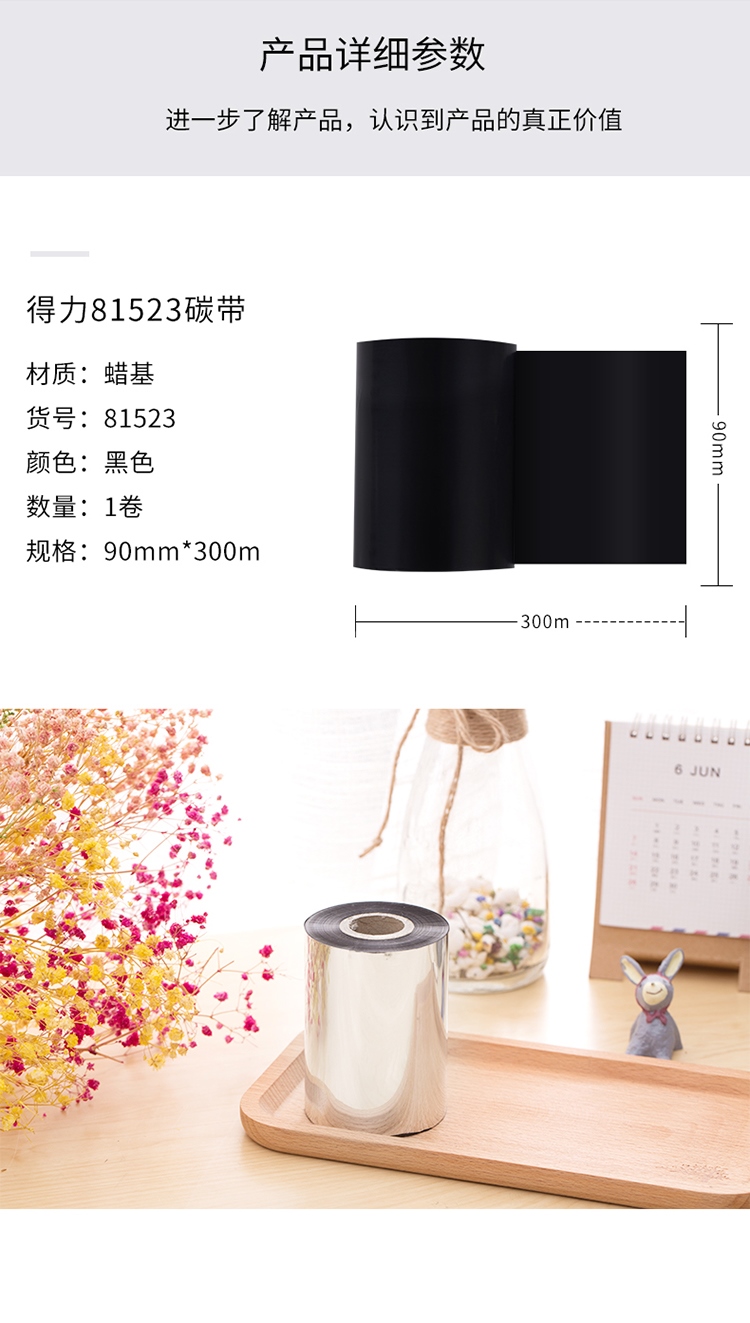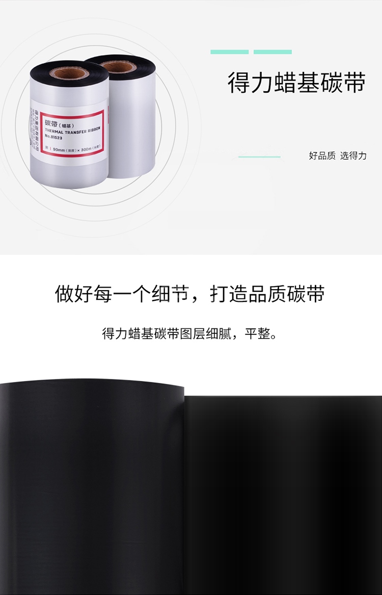 “deli/得力”No.81523 碳帶(蠟基) 單卷裝(黑色90mm*300m適用轉(zhuǎn)印條碼打印機(jī)標(biāo)簽機(jī))