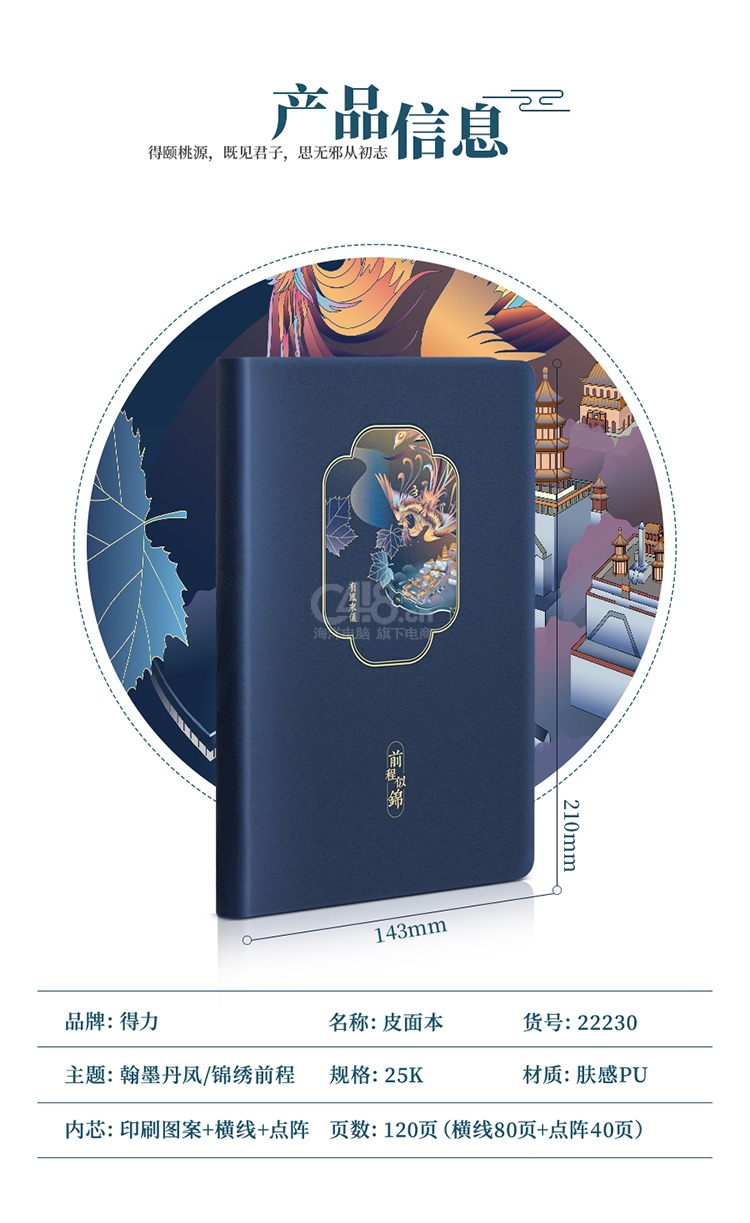 “deli/得力”22230-前程似錦 記事本 1本裝(頤和園系列皮面本25K創(chuàng)意古風(fēng)日記本筆記本子文具120張)