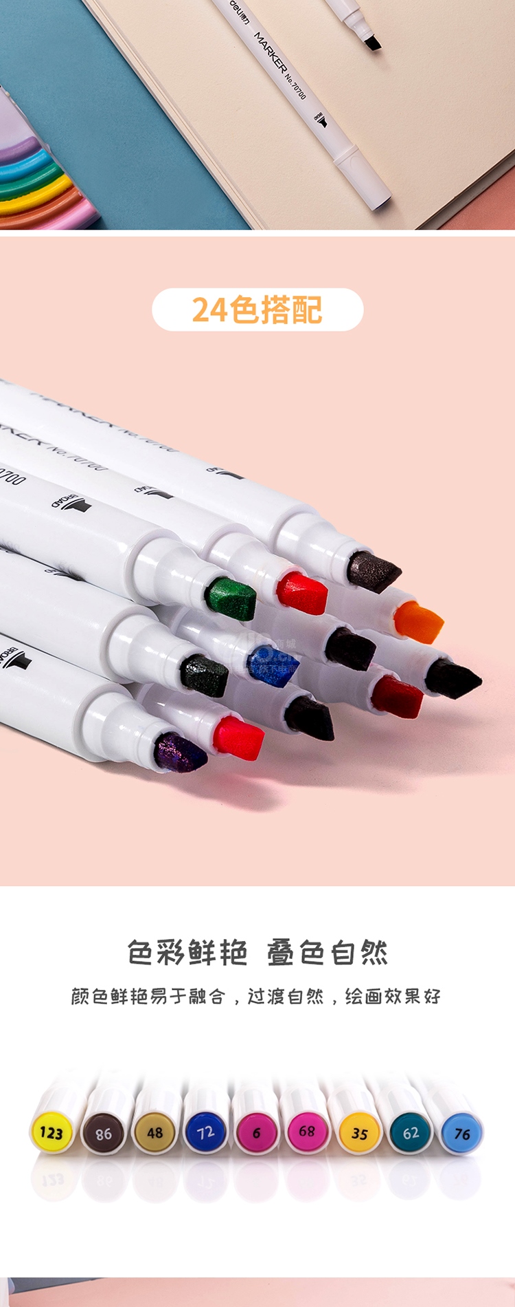 “deli/得力”No.70700-24 彩色馬克筆 1盒裝(雙頭細(xì)桿學(xué)生水彩筆手繪漫畫筆設(shè)計繪畫記號筆24色/盒)