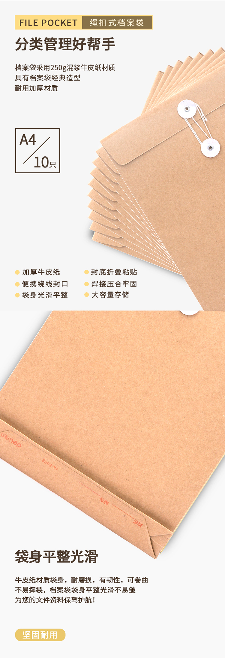 “deli/得力”No.8383 檔案袋 1包裝(A4混漿250g牛皮紙側(cè)寬3cm文件資料袋10只/)
