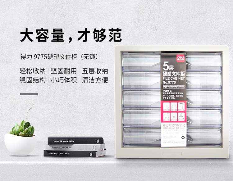 “deli/得力”No.9775 硬塑文件柜 單個裝(灰色5層手拉桌面帶索引標簽抽屜資料收納柜)