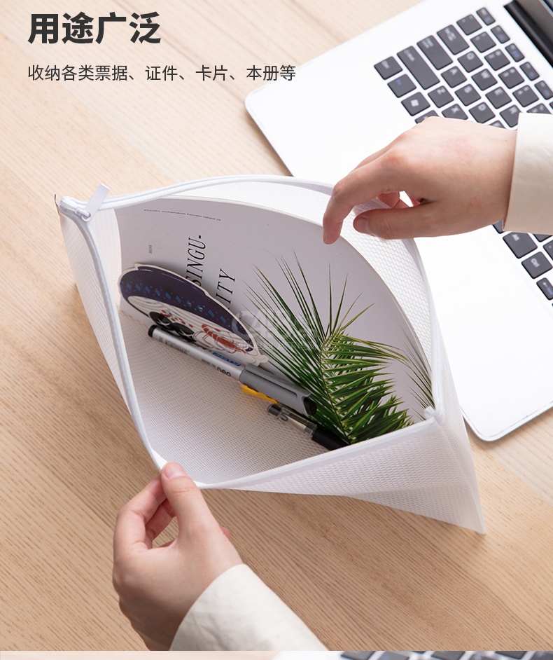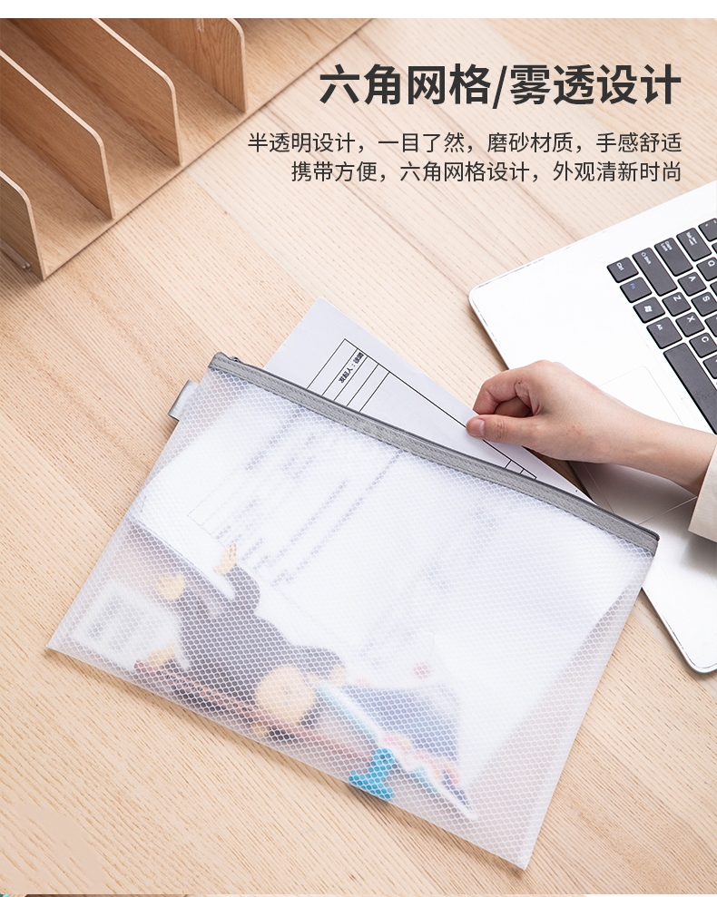 “deli/得力”No.63456 文件袋 10個(gè)/包裝(顏色隨機(jī)透明方格網(wǎng)EVA環(huán)保材質(zhì)拉鏈袋辦公用品A4)