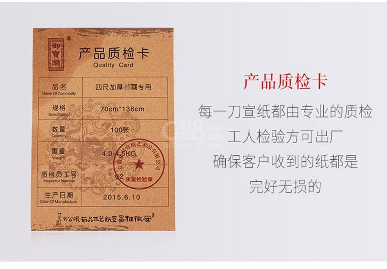 “御寶閣”四尺四開 半生半熟 宣紙 單刀裝(35*69cm半生熟加厚書畫專用創(chuàng)作空白紙比賽作品紙適合書法練習100張/刀)