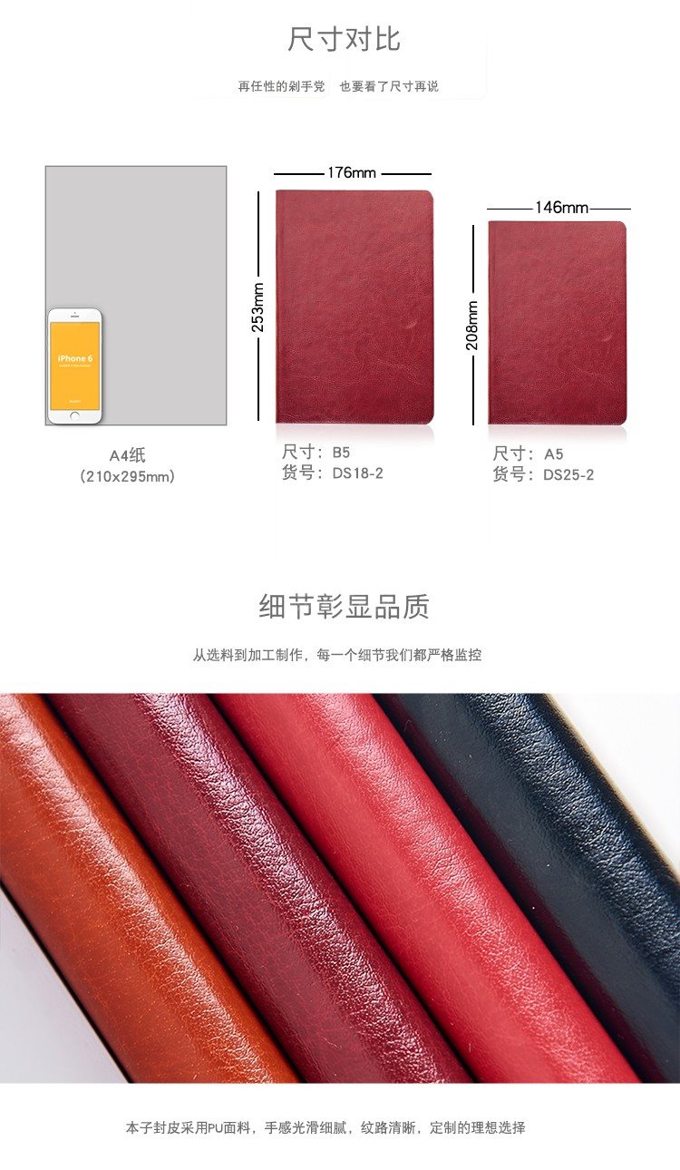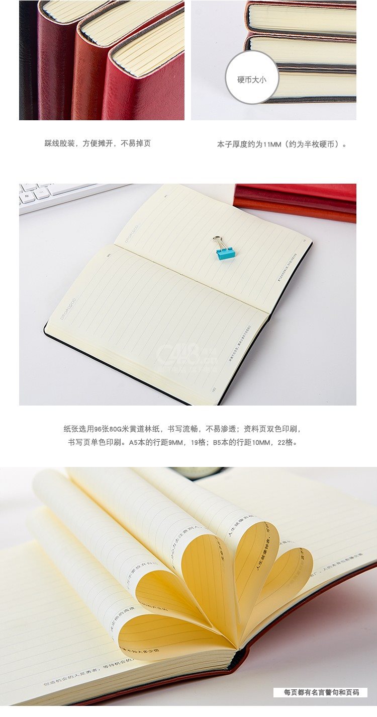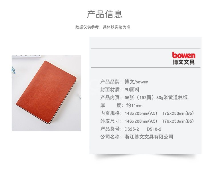 “bowen/博文”DS18-2 記事本 單本裝(黑色B5 176*253mm PU軟皮面80g米黃道林紙筆記本橫線內(nèi)芯有頁碼小清新學(xué)生本辦公用本96張/本)