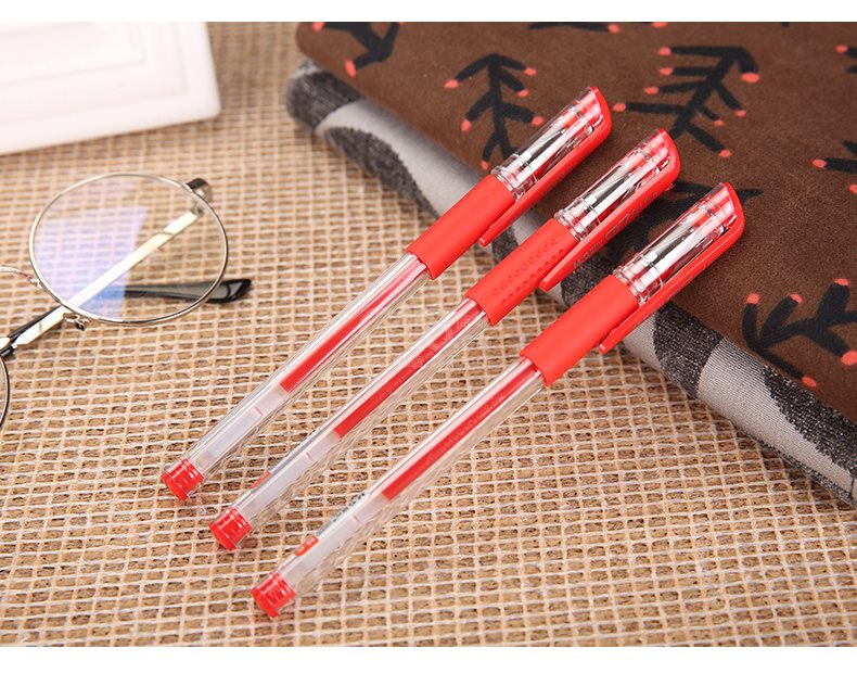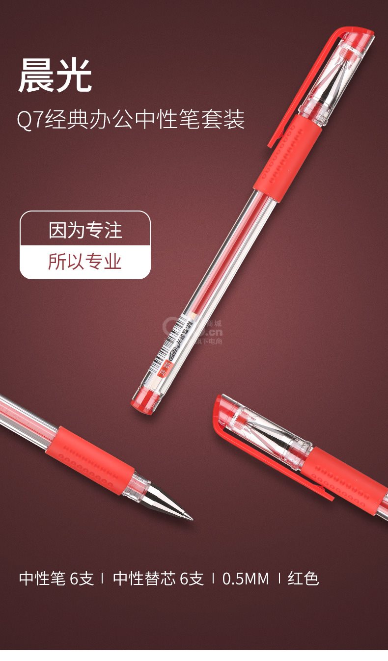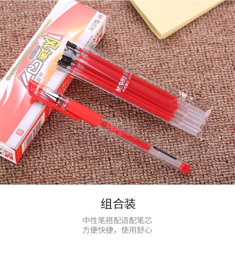 “M&G/晨光”HAGP1037 中性筆套裝 單盒裝(紅色Q7/0.5mm子彈頭簽字筆拔蓋碳素筆辦公水筆6支筆+6支芯)