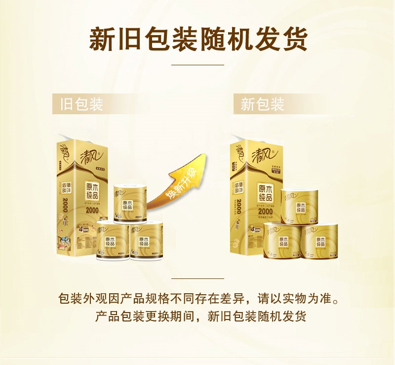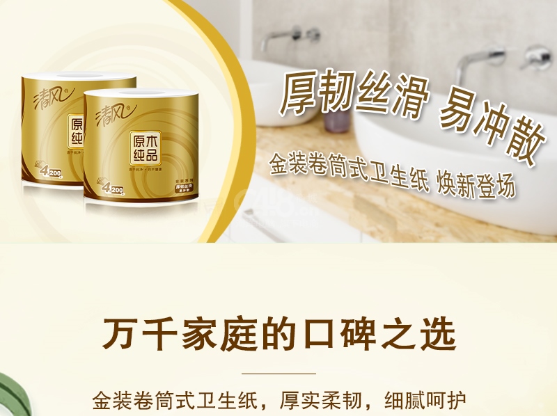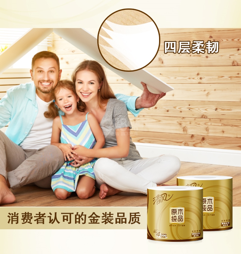 “APP/清風(fēng)”B20AGJ1 衛(wèi)生紙 1提裝(原木純品金裝系列卷紙紙面巾4層加厚200克母嬰可用濕水不易破新老包裝隨機(jī)發(fā)貨10卷/提)