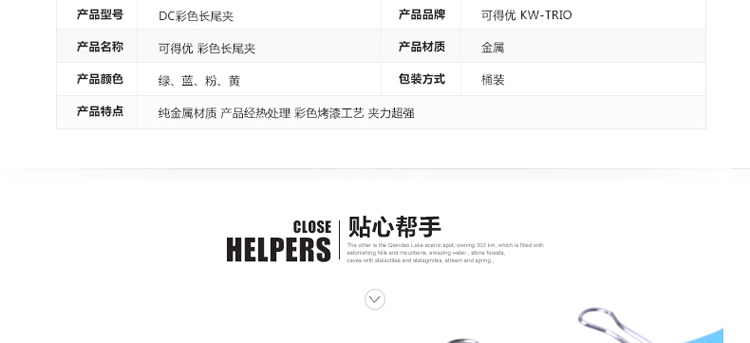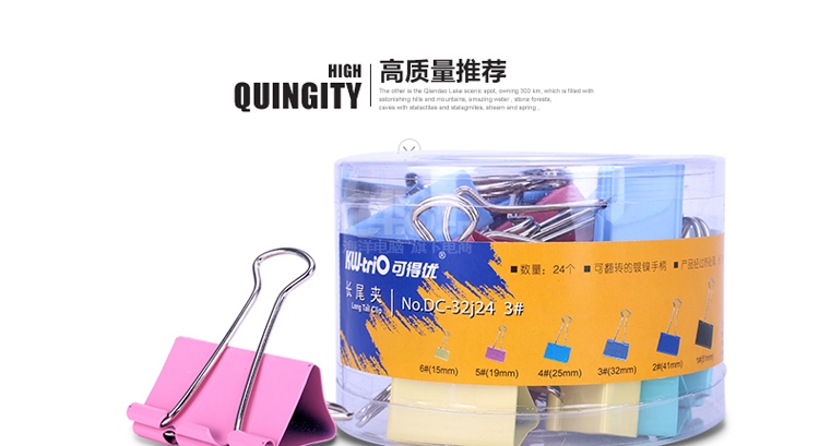 “KW-triO/可得優(yōu)”DC-19J 長尾夾 40只/筒裝(彩色5#19mm燕尾夾文件夾子鐵票夾票據(jù)夾)