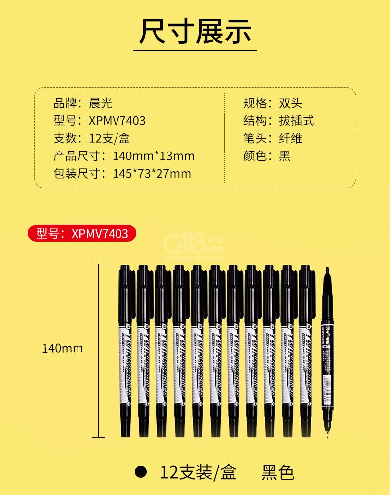 晨光(M&G)文具黑色雙頭細(xì)桿記號筆 學(xué)生勾線筆 學(xué)習(xí)重點(diǎn)標(biāo)記筆 12支/盒XPMV7403