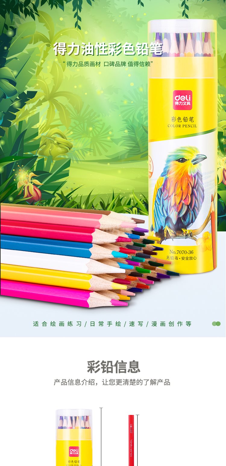 “deli/得力”No.7070-36 彩色鉛筆 1筒裝(36色36支原木六角桿油性彩鉛學(xué)生涂色專業(yè)美術(shù)畫(huà)筆套裝文具紙筒DL-7070-36)