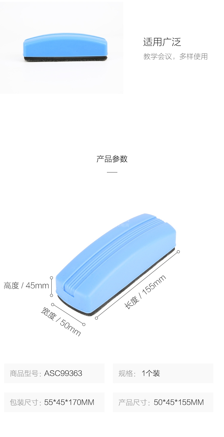 晨光(M&G)文具藍(lán)色絨面高檔白板擦 單個(gè)裝ASC99363