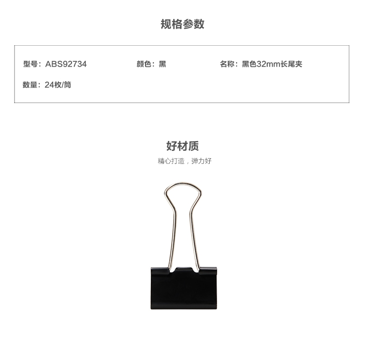 “M&G/晨光”ABS92734 長尾夾 1罐裝(黑色Eplus系列燕尾夾票據夾32mm 24只/罐)