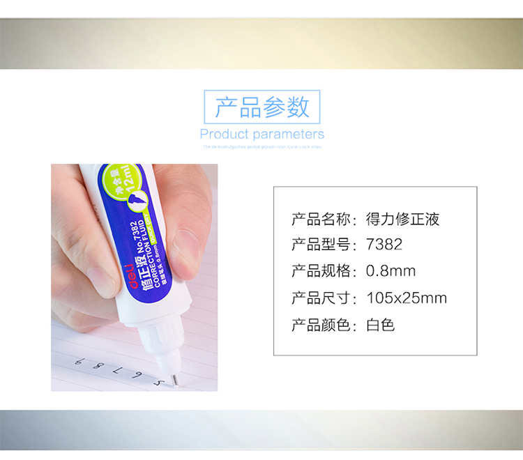 “deli/得力”No.7382 修正液 1瓶裝(白色環(huán)保0.8mm筆頭12ml/瓶16瓶/盒)
