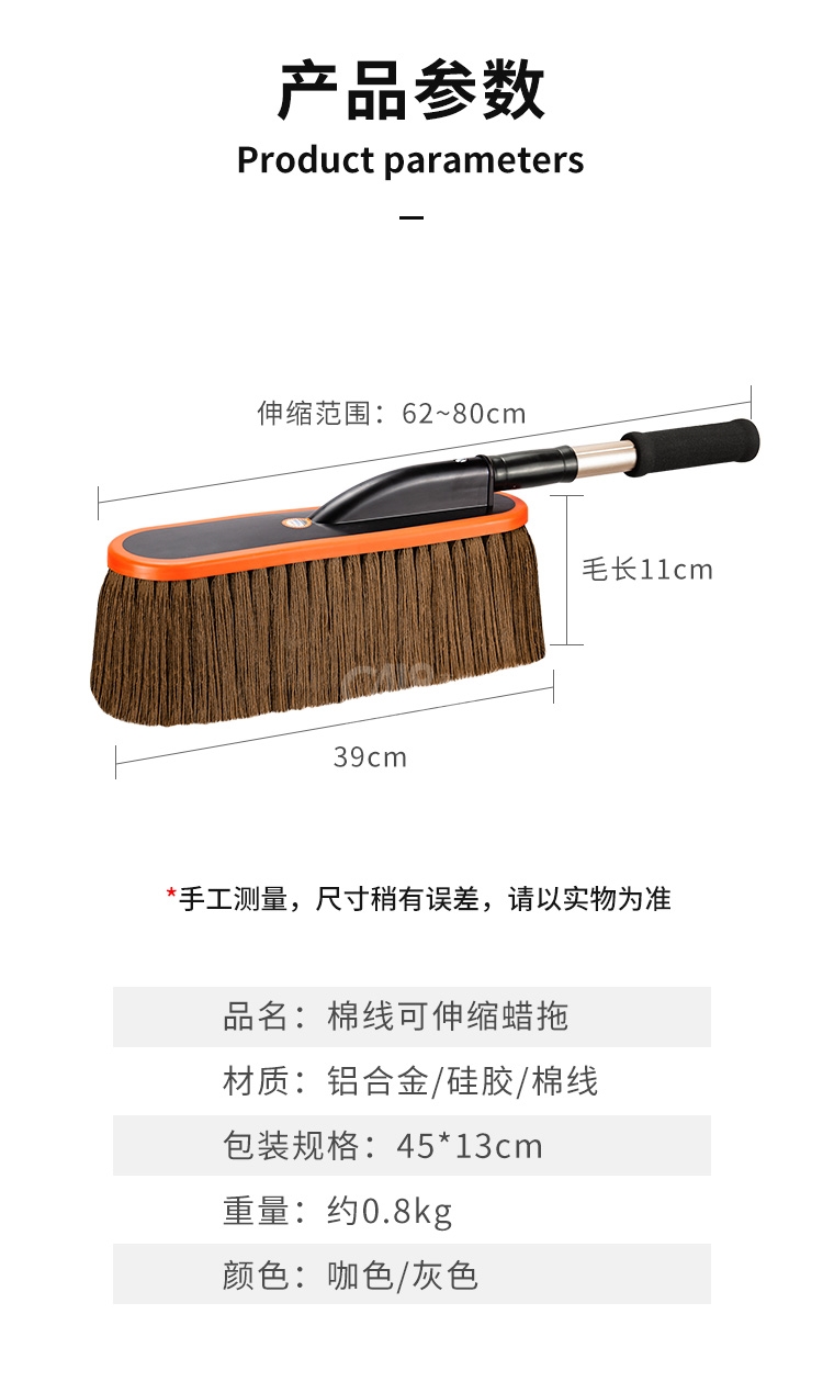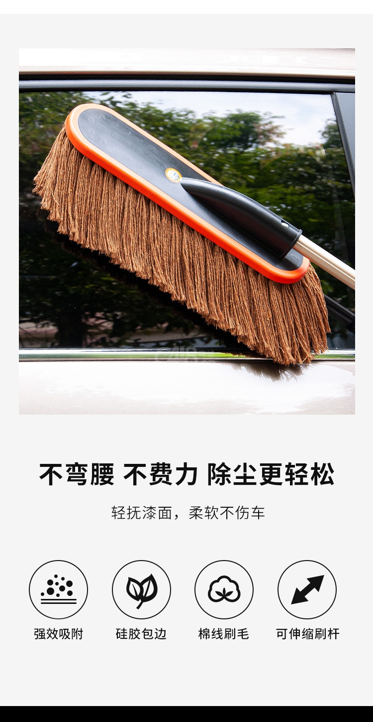 “YUECAR/悅卡”YC-1303 棉線可伸縮蠟拖 單個裝(咖啡色擦車拖把除塵撣子洗車工具汽車用品車載掃灰神器蠟刷)