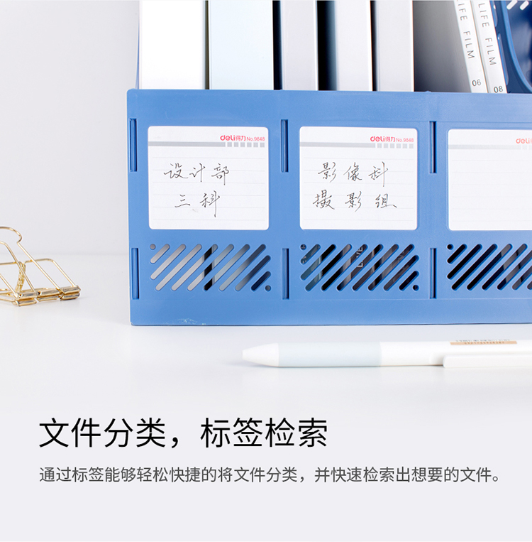 “deli/得力”No.9848 四聯(lián)文件框 單個(gè)裝(藍(lán)色鏤空桌面文件筐帶標(biāo)簽穩(wěn)固文件欄資料框)