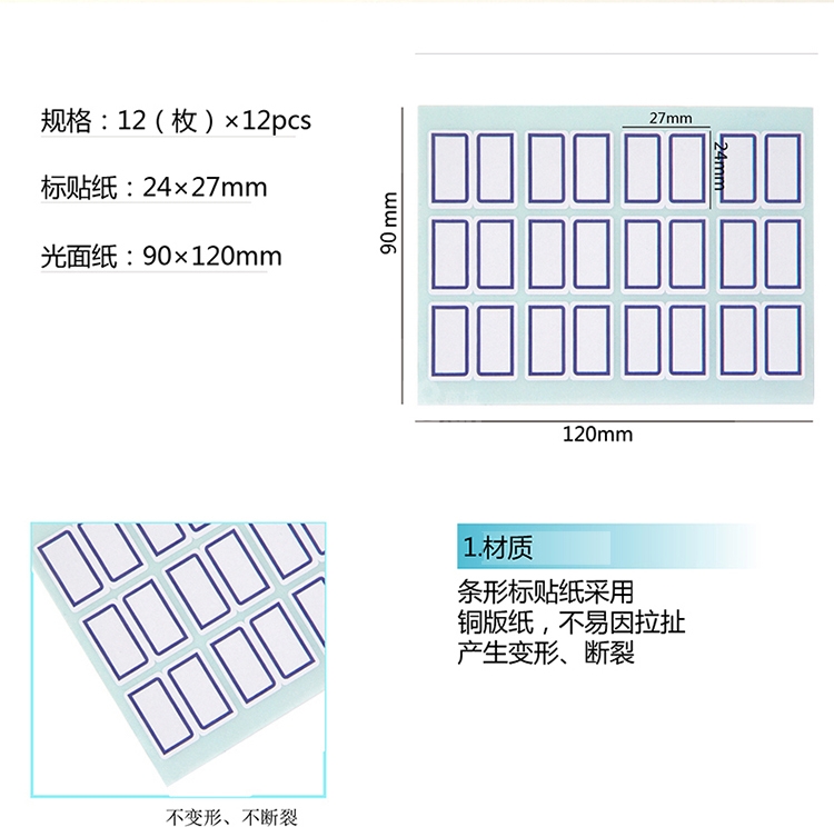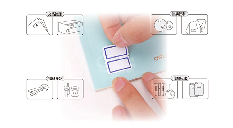 “deli/得力”No.7193 自粘性標(biāo)貼 1卡裝(白色紅框24*27mm標(biāo)簽貼標(biāo)簽紙可愛不干膠寫字辦公口取紙手寫自粘貼紙防水分類價(jià)格12枚/張12張/卡144枚)