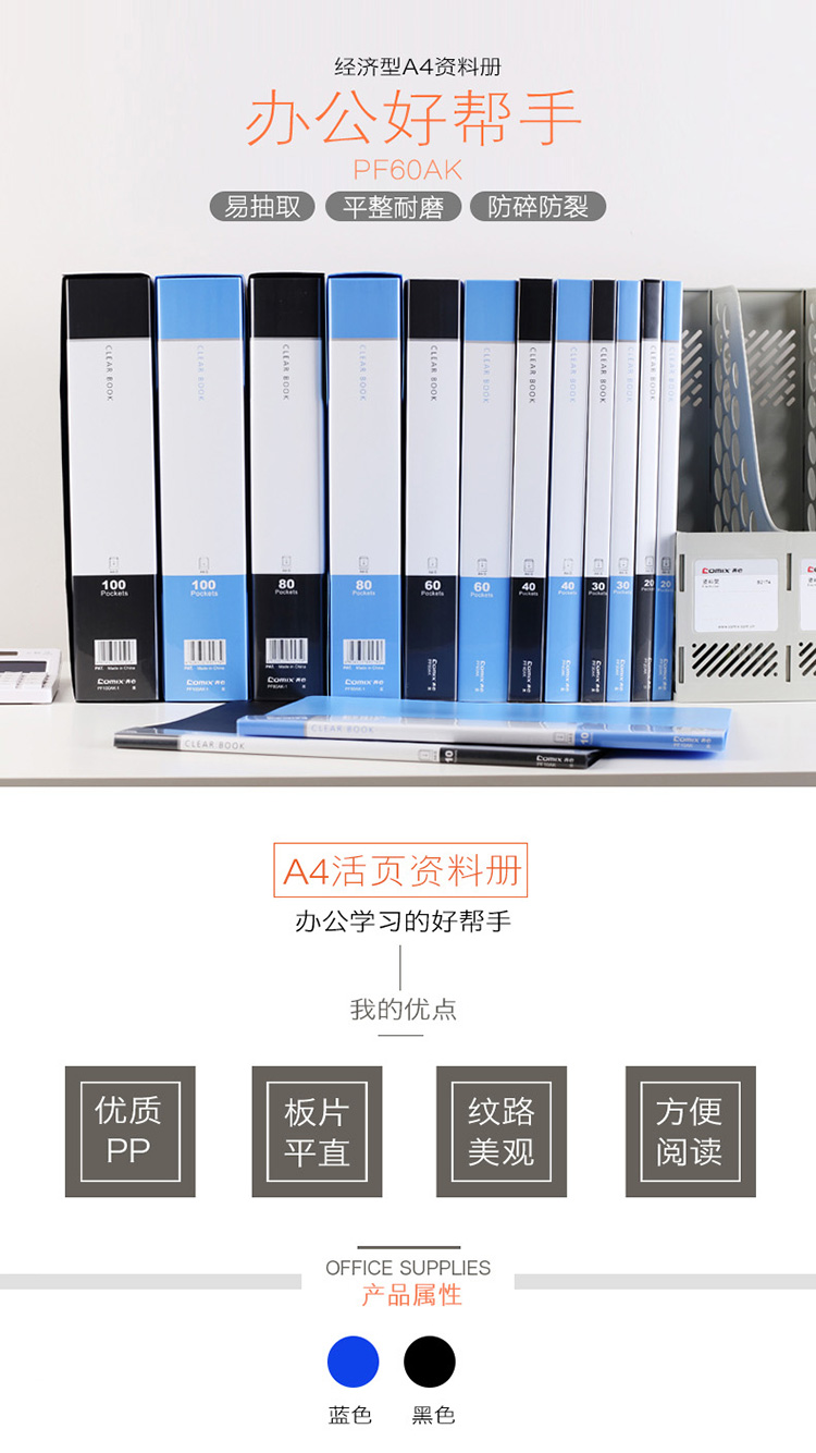 “COMIX/齊心”PF60AK 資料冊 單個裝(藍色60頁A4資料夾插袋文件冊收納袋檔案活頁收納夾)
