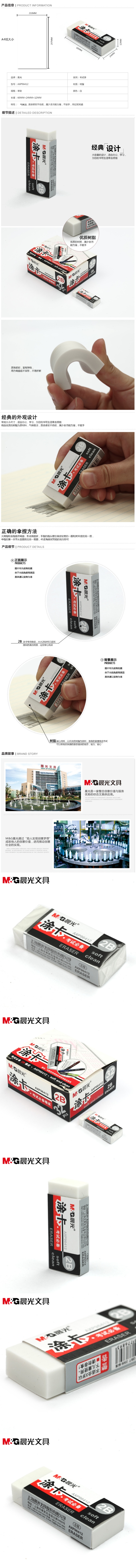 “M&G/晨光”AXP96412 涂卡橡皮 單塊裝(白色2B考試少屑橡皮擦辦公學(xué)習(xí)通用32塊/盒)