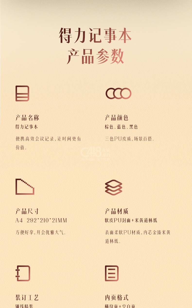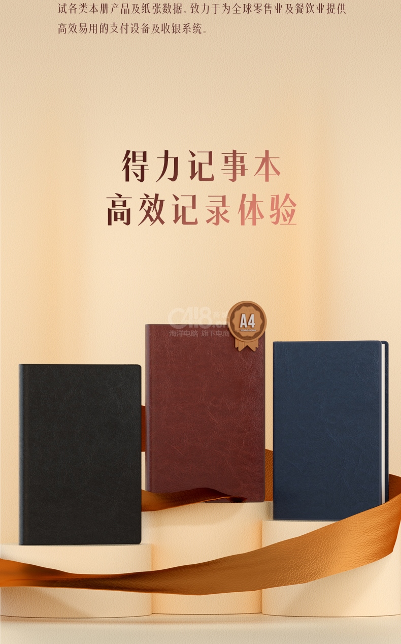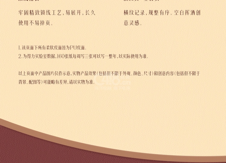 “deli/得力”No.3306 記事本 1本裝(棕色A4/320頁160張加大加厚會(huì)議記錄皮面本商務(wù)工作記事日記本筆記本子文具辦公用品)
