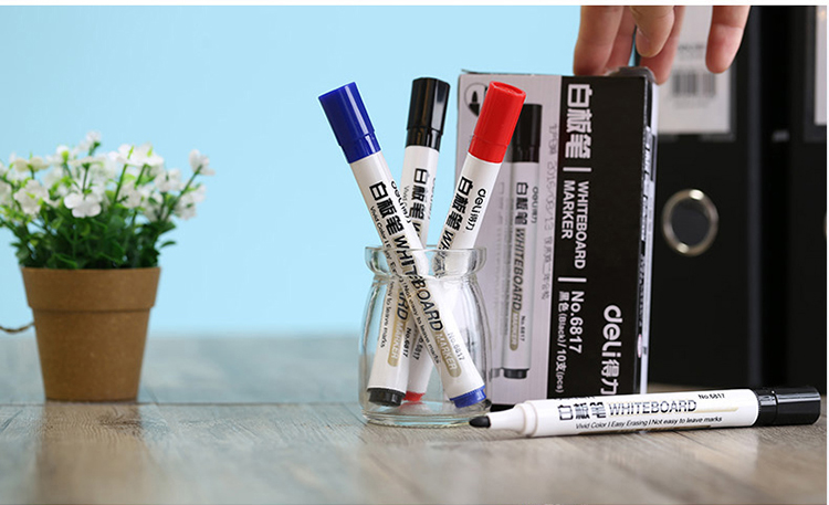 “deli/得力”No.6817 白板筆 單盒裝(黑色色澤明亮易擦不留痕辦公用品10支/盒)