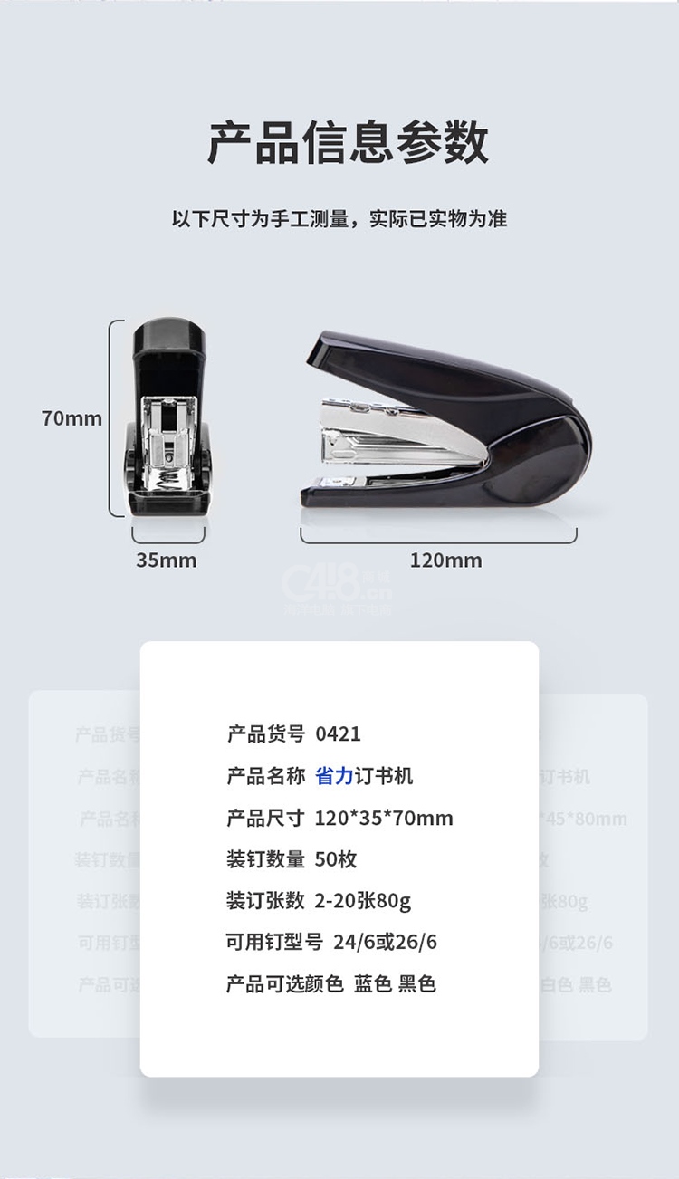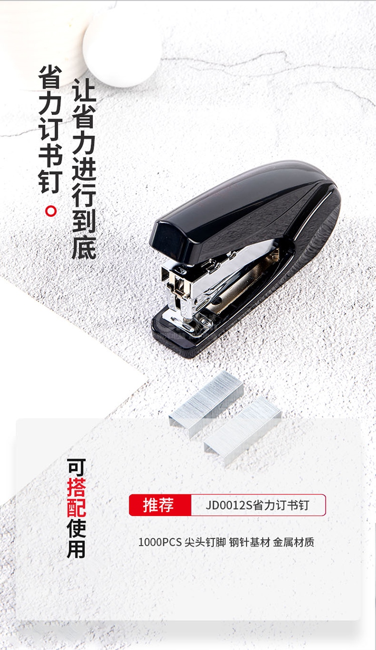 “deli/得力”No.0421 省力訂書機 單個裝(黑色20頁小號訂書器適配12號訂書釘辦公用品)