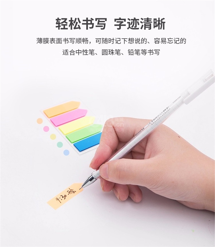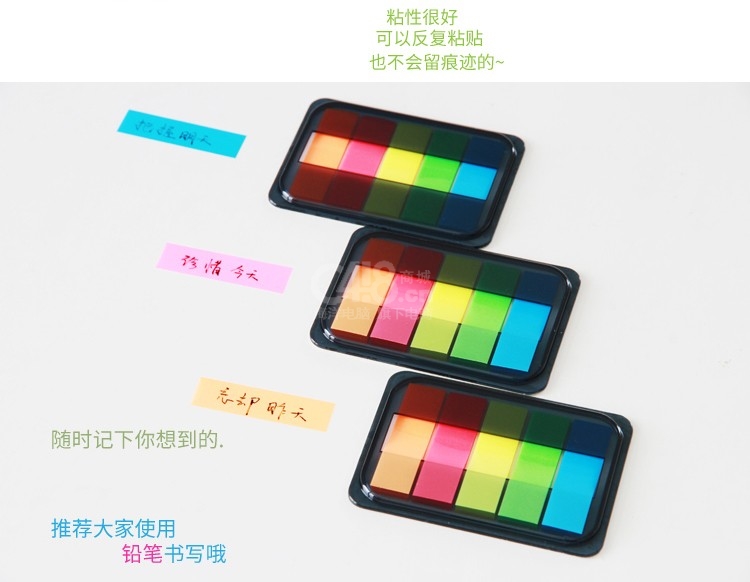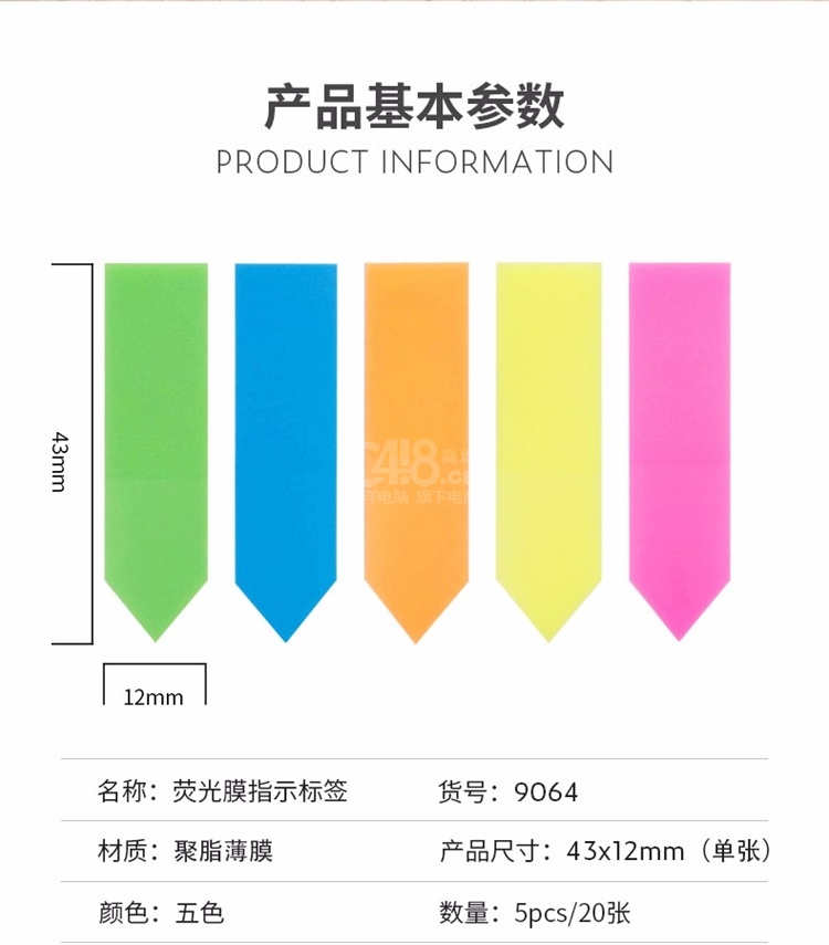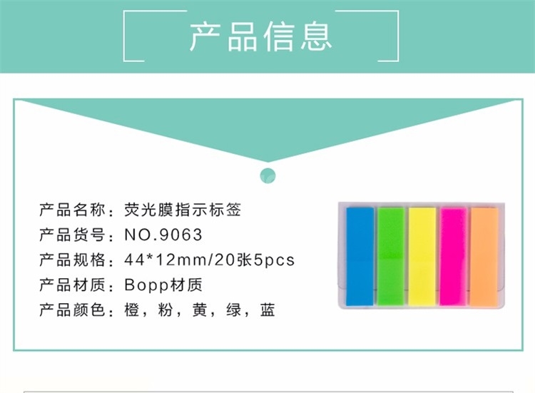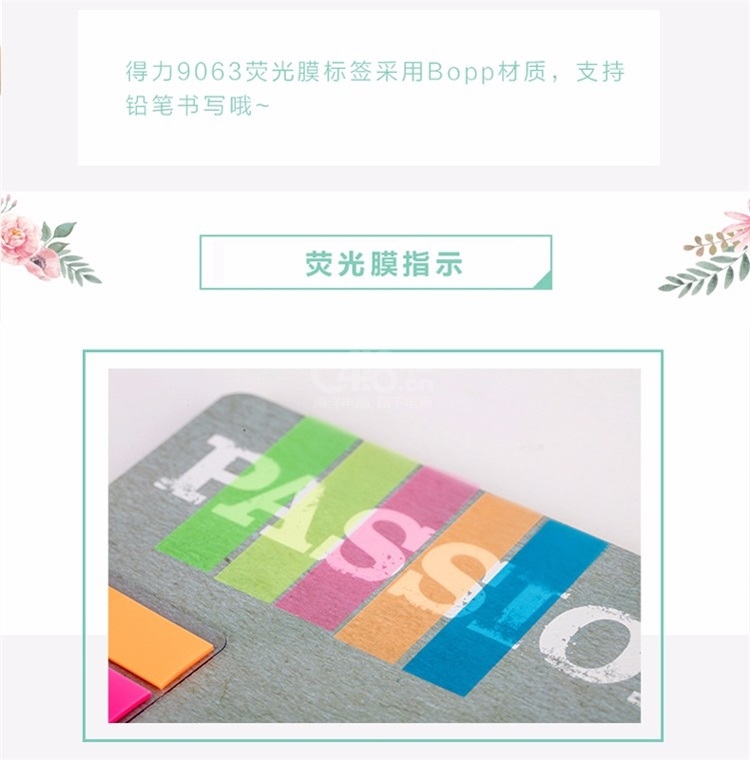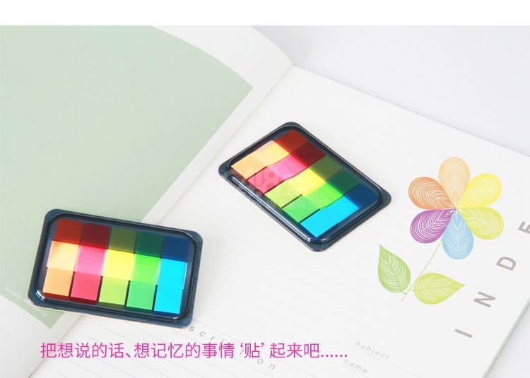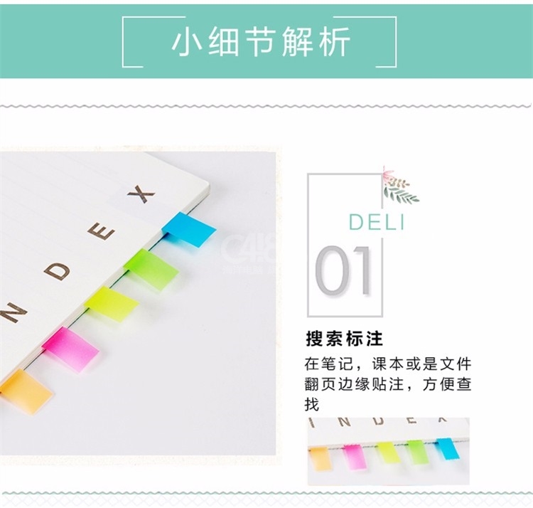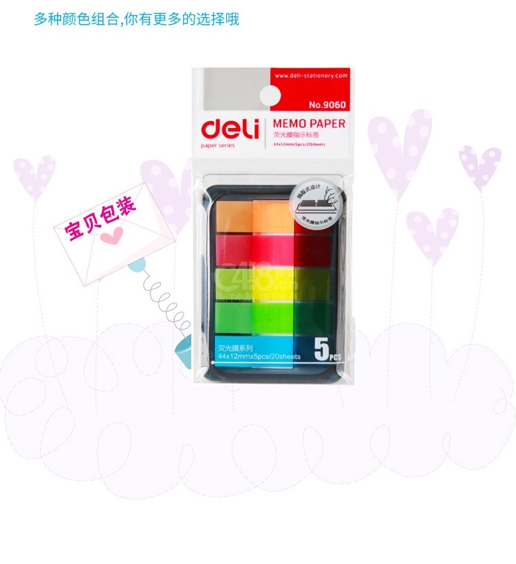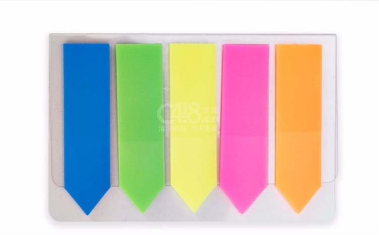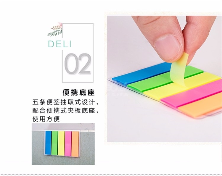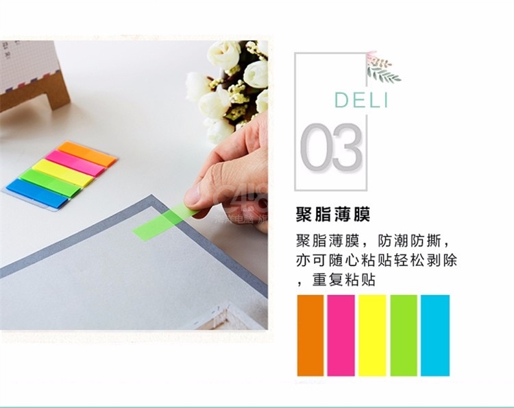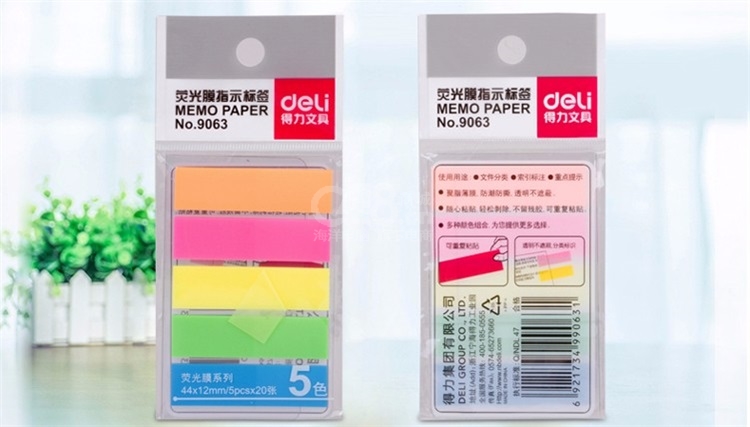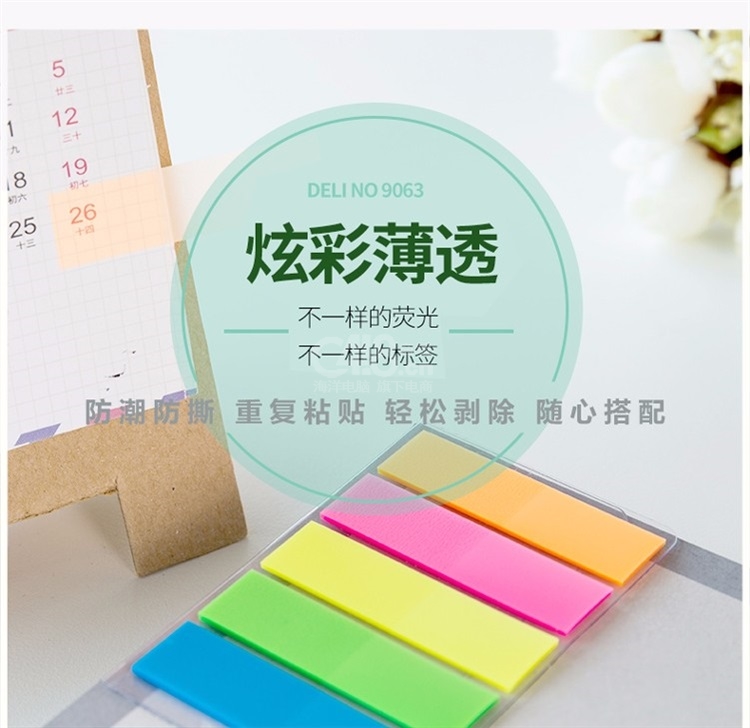 “deli/得力”No.9063 熒光膜指示標(biāo)簽 單袋裝(混色12*44mm炫彩文件標(biāo)注分類帖記事貼便利貼書簽分頁貼100頁/袋)