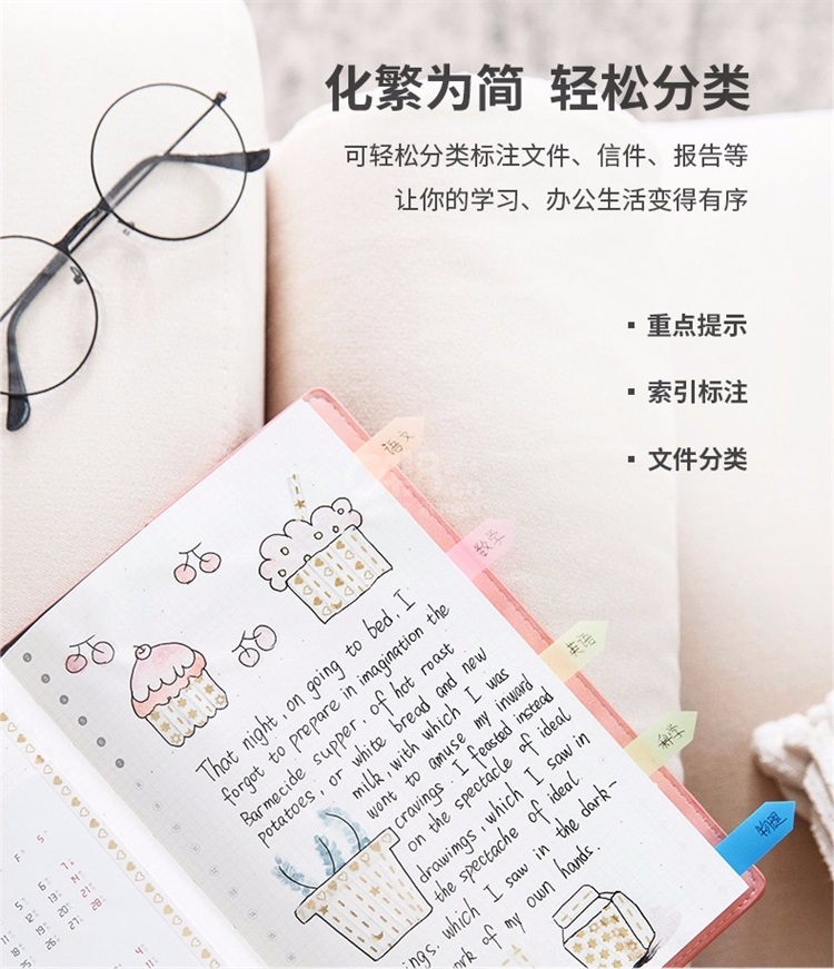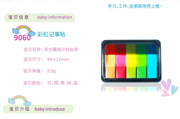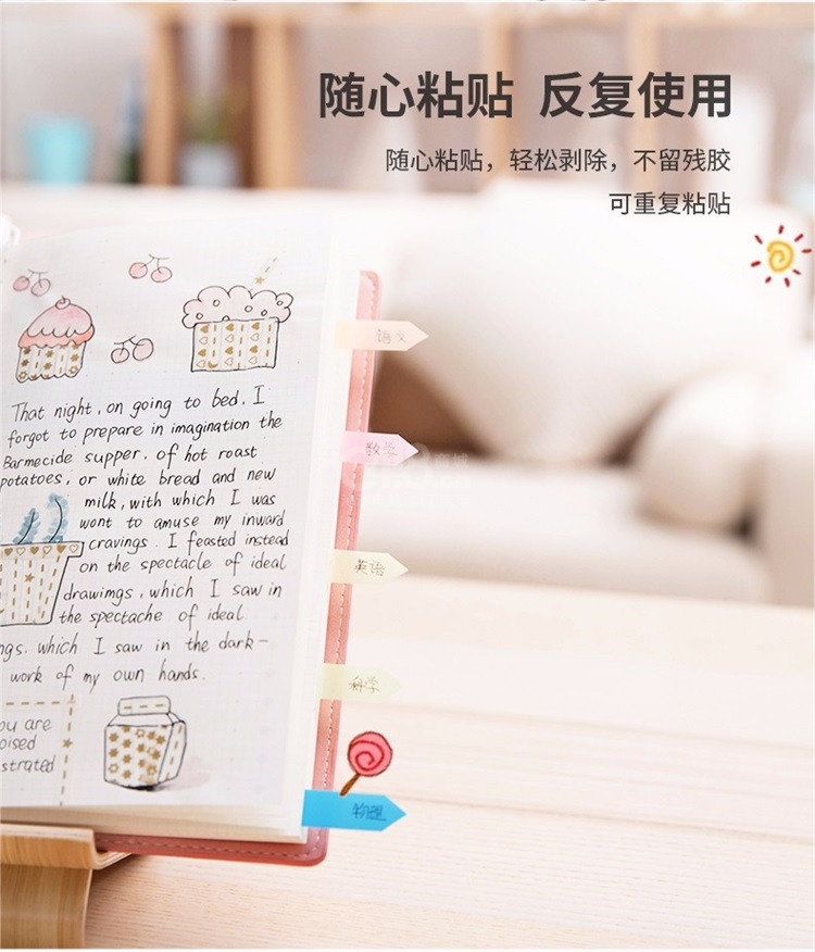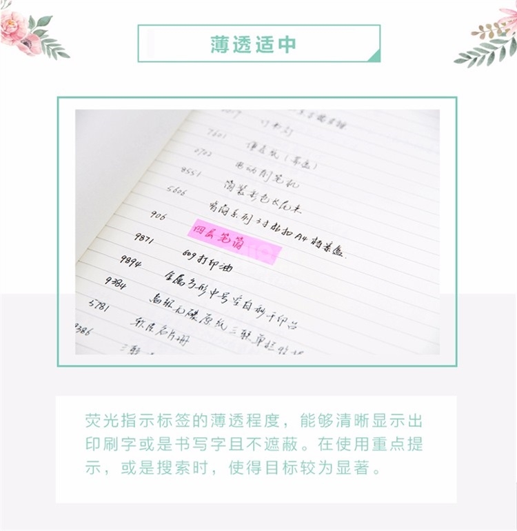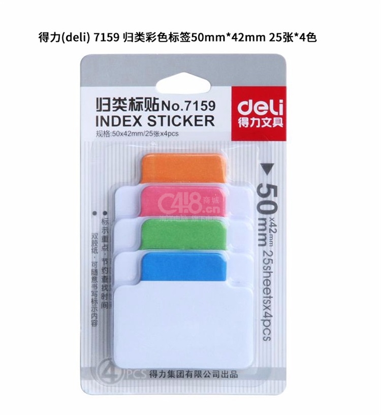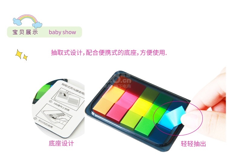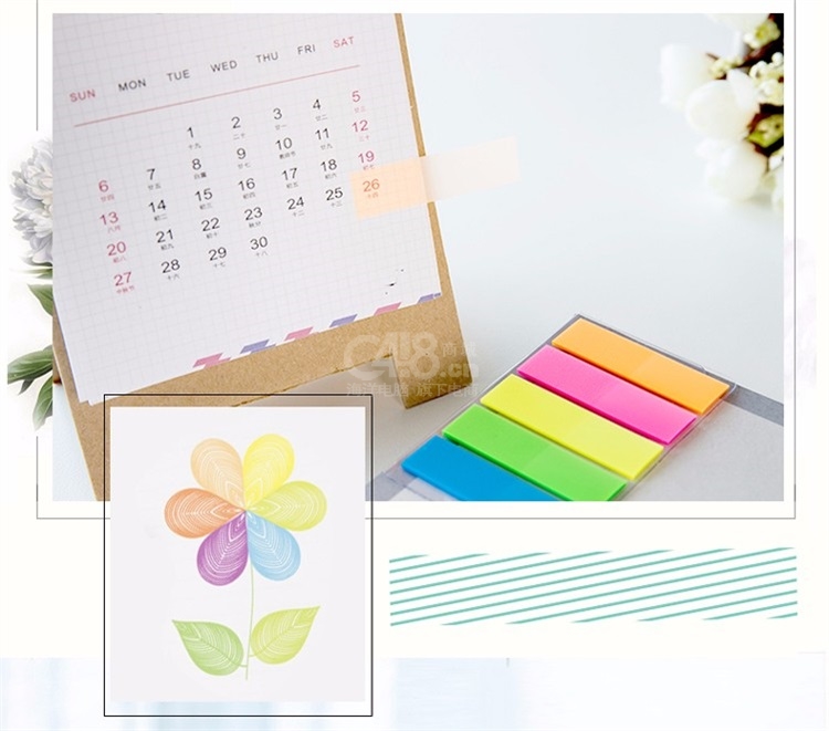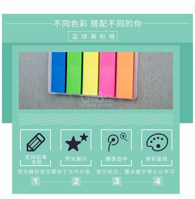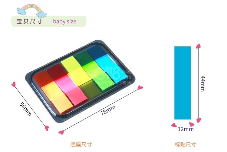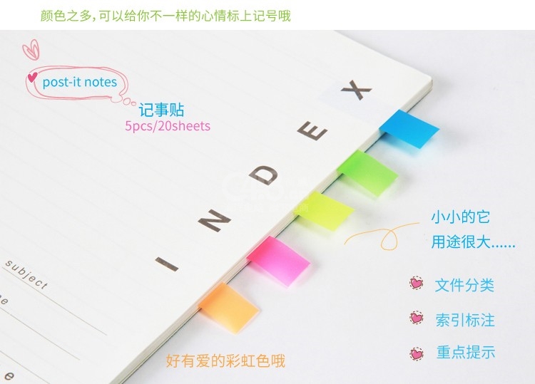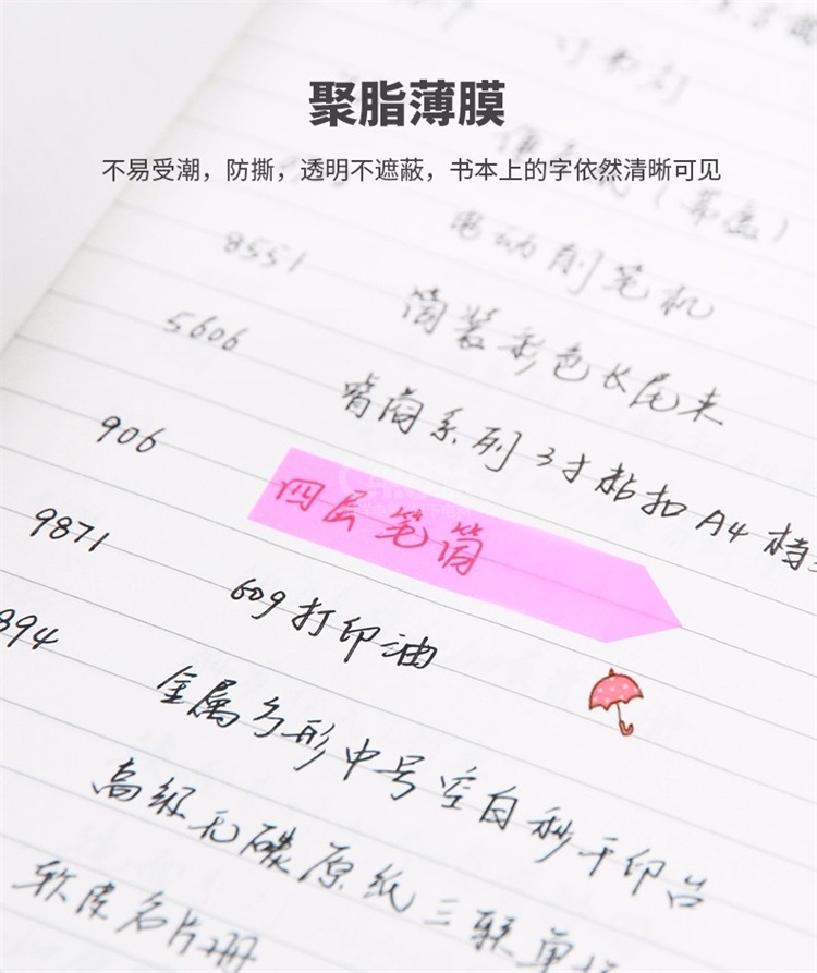 “deli/得力”No.9063 熒光膜指示標(biāo)簽 單袋裝(混色12*44mm炫彩文件標(biāo)注分類帖記事貼便利貼書簽分頁貼100頁/袋)