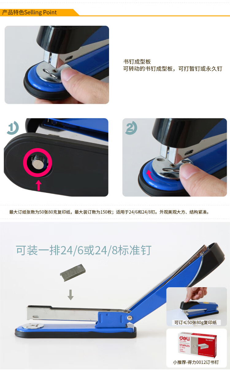 “deli/得力”No.0314 訂書機 單個裝(黑色12#金屬材質(zhì)辦公用品可裝訂50頁)