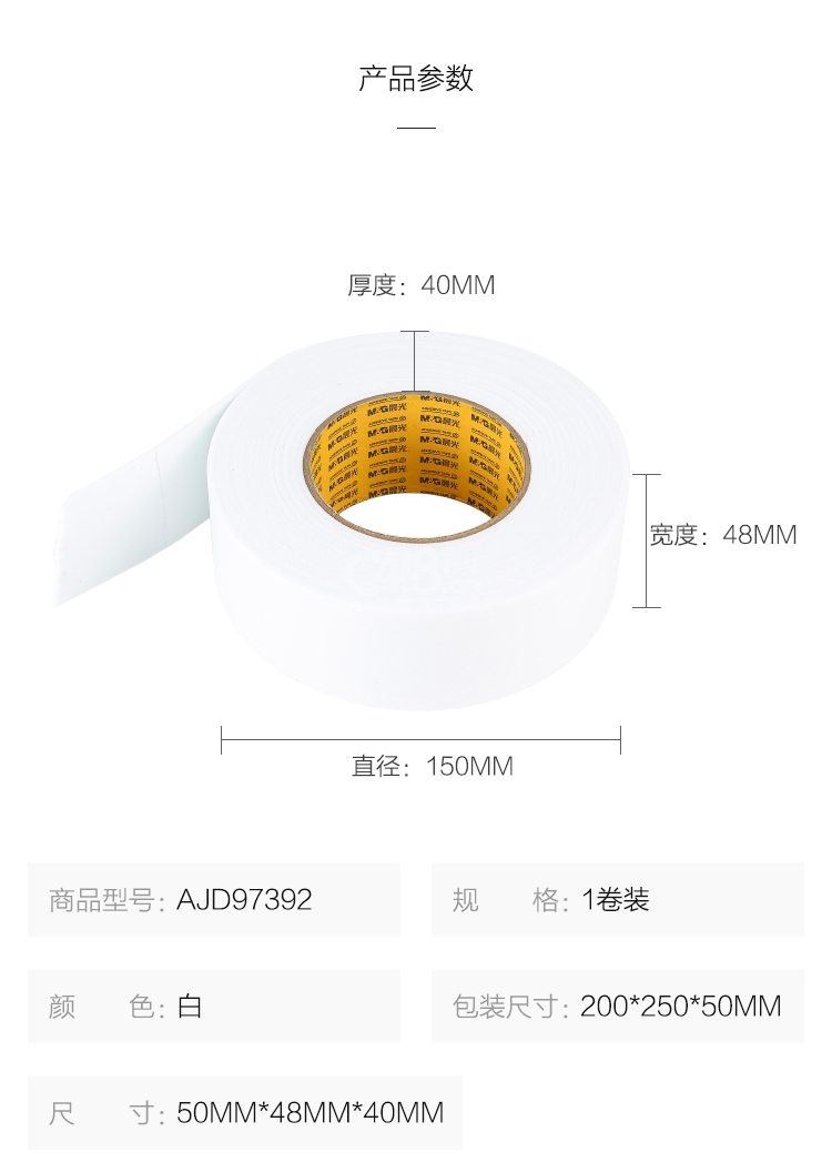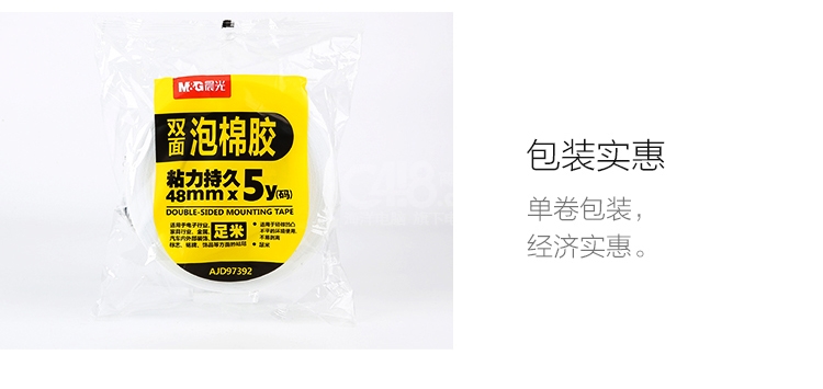 晨光(M&G)文具48mm*5y雙面泡棉膠帶手撕即斷泡棉膠 單卷裝AJD97392