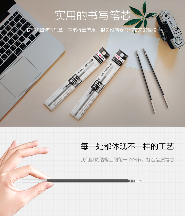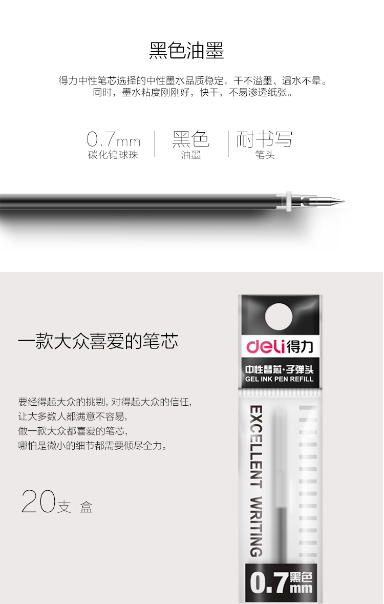 “deli/得力”S753 中性筆替芯 單盒裝(黑色0.7mm子彈頭水筆簽字筆筆芯20支/盒)