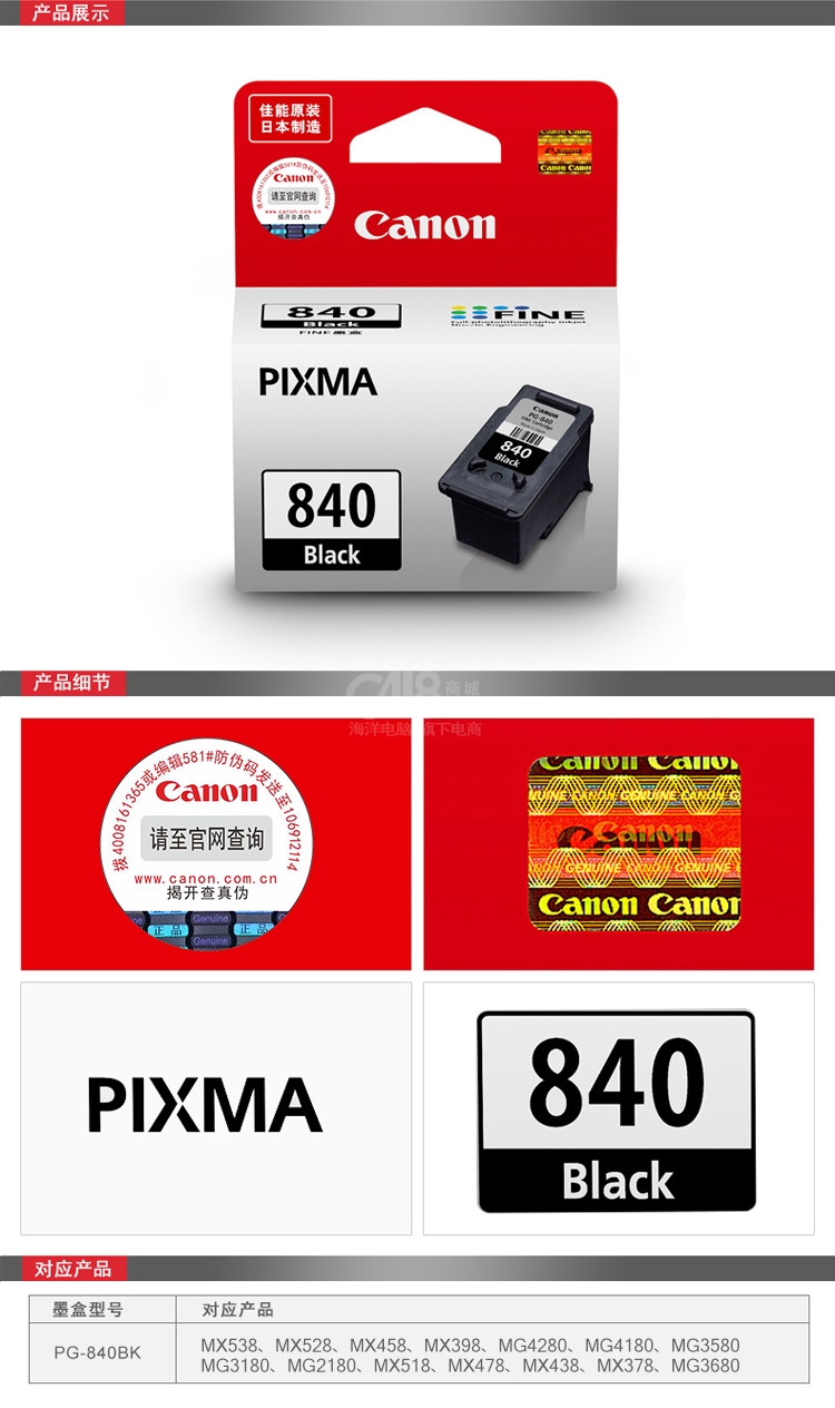 品牌:Canon/佳能型號:PG-840產(chǎn)地:北京市