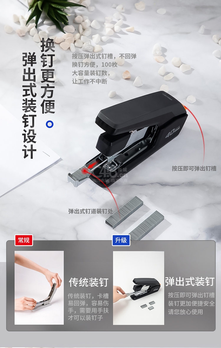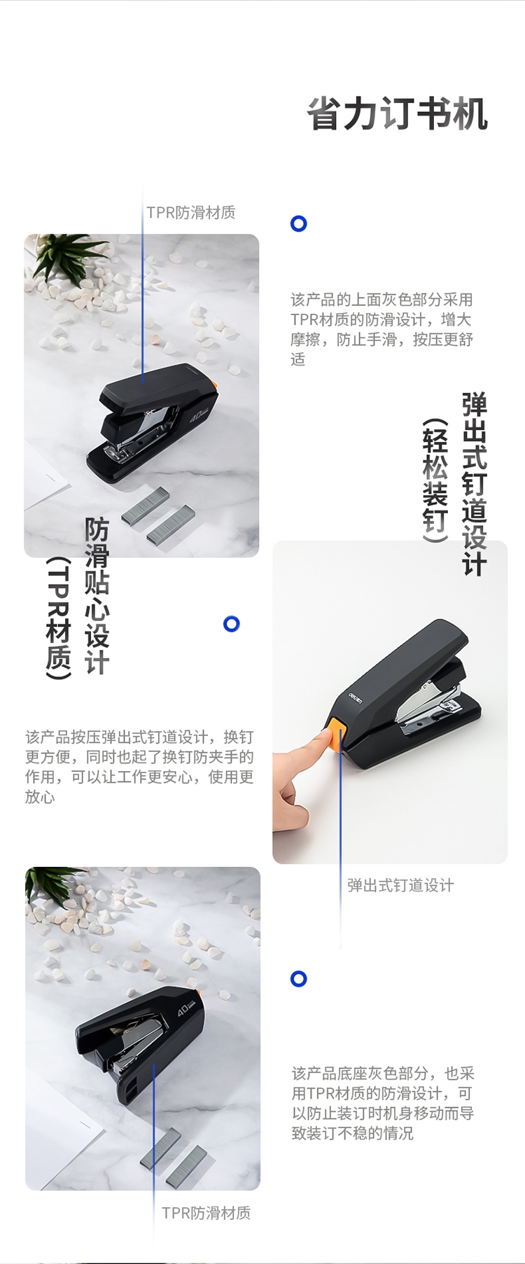 “deli/得力”No.0371 省力訂書機 單個裝(黑色12#釘訂書器適配24/6,26/6及24/8訂書釘辦公用品)