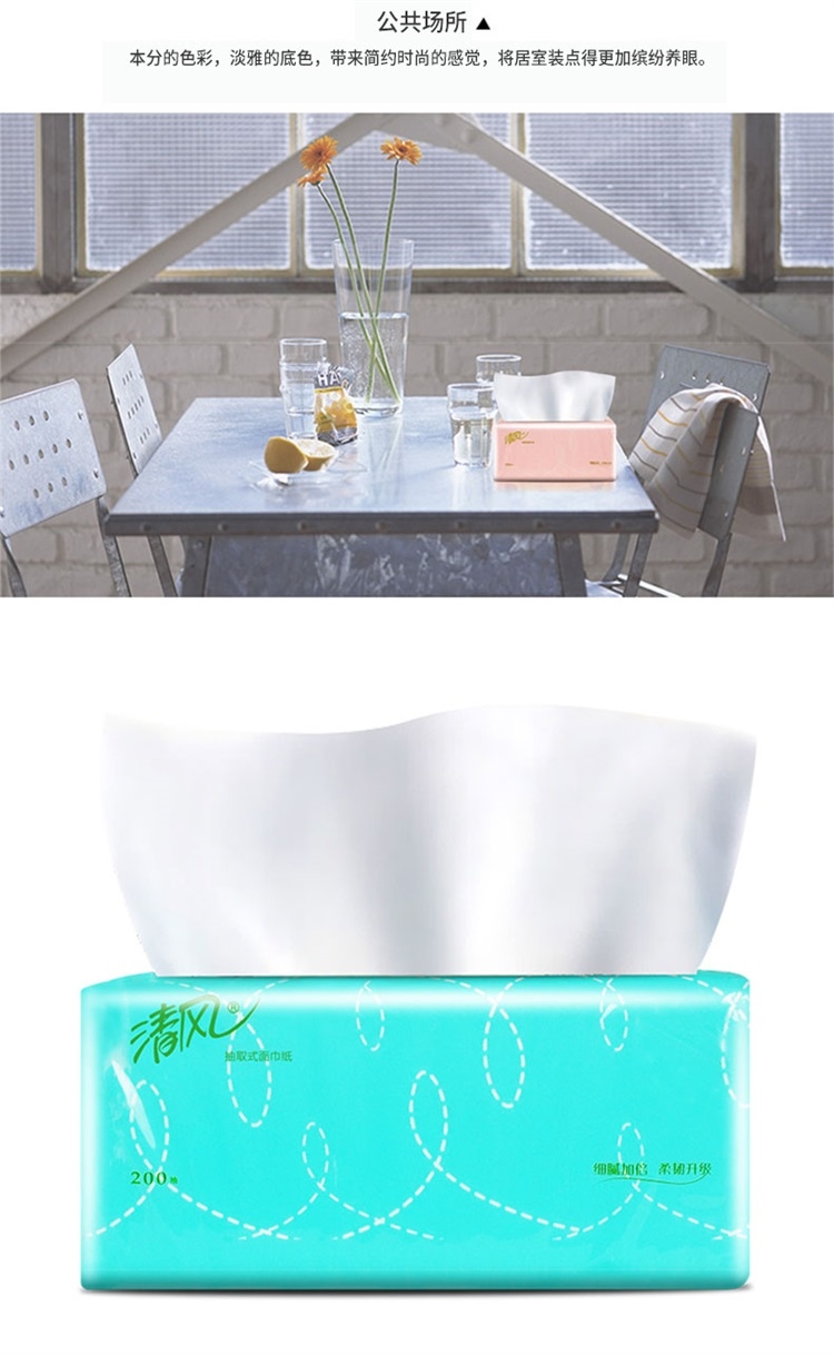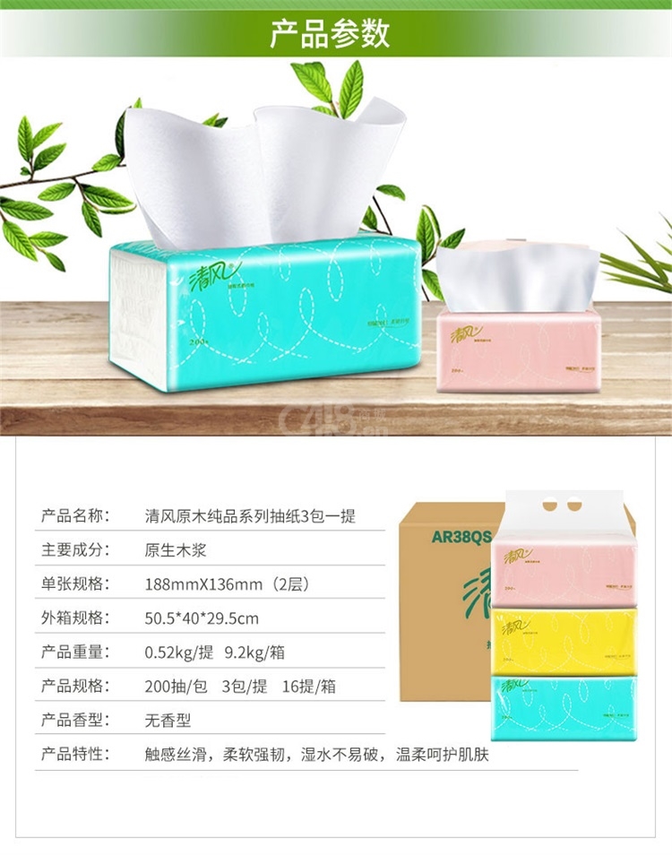 “APP/清風(fēng)”BR38AC 抽取式面巾紙 單提裝(面紙餐巾紙衛(wèi)生紙擦手紙巾200抽/包3包/提48包/箱)