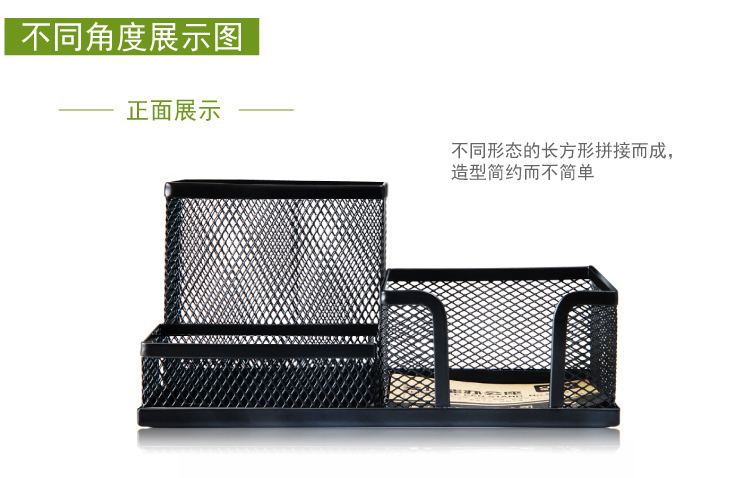 “deli/得力”No.9175 多功能辦公座 單個(gè)裝(黑色金屬網(wǎng)紋筆筒多功能三格桌面收納)